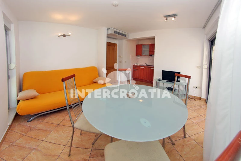 Apartmán (55 m2) s balkonem, a výhledem na moře. Nachází se ve 2. patře objektu. Apartmán má 2 ložnice a je vhodný pro až 6 osob. Kuchyňská linka je vybavena varnou deskou, kávovarem, rychlovarnou…