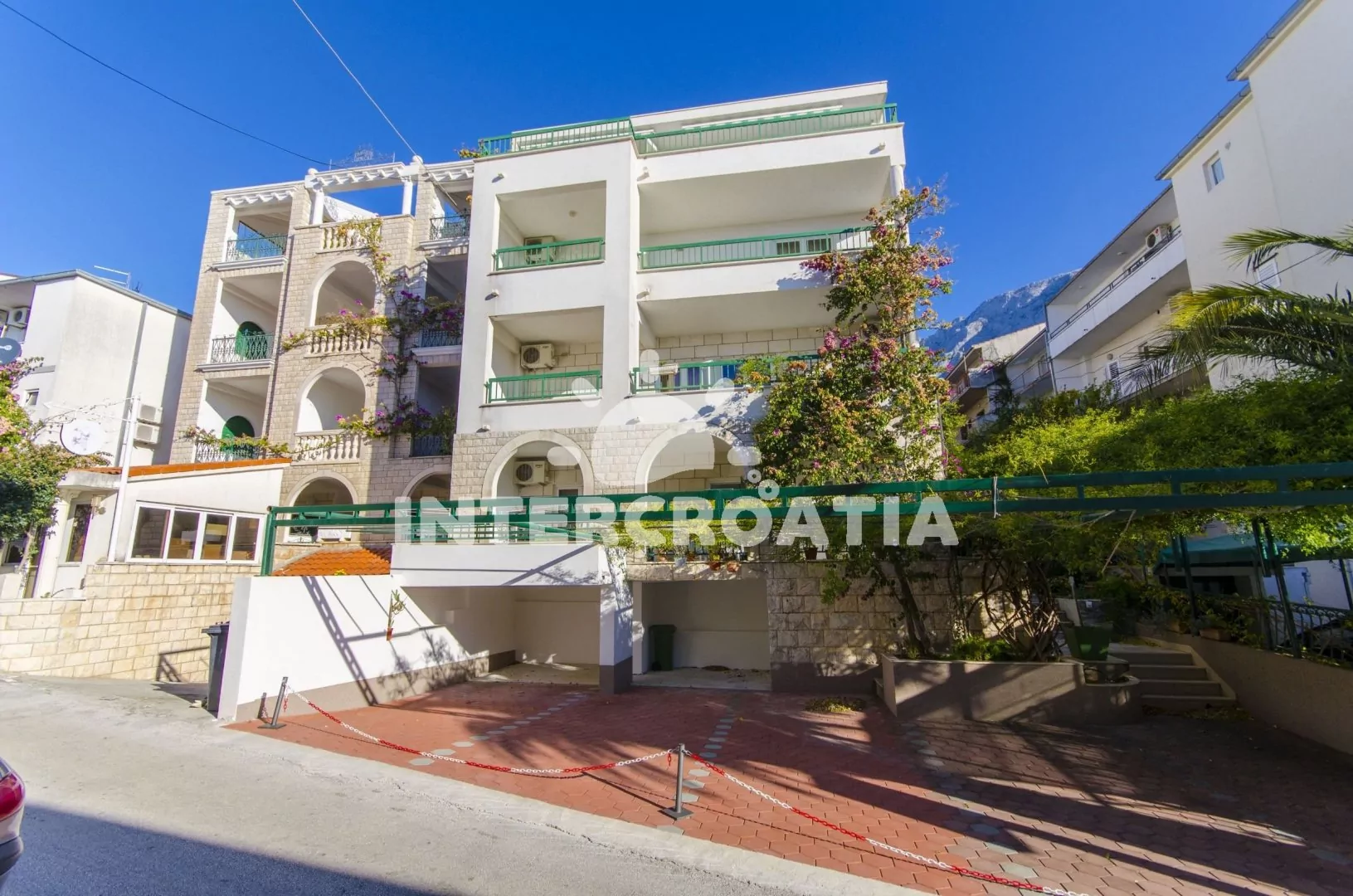 Vzdálenosti: Moře 120 m, pláž 200 m, centrum 1 km, market 50 m, pošta 1 km, lékárna 250 m, nemocnice 250 m, restaurace 100 m, směnárna 150 m, banka 1 km, přístav 1 km, kotviště pro čluny 200 m, potápěčský klub 150 m, tenisové kurty 300 m, venkovní bazén 150 m, diskotéka 300 m, bar 50 m, čerpací stanice 500 m, veřejná doprava 550 m, trajekt (Makarska) 1 km, letiště (Split) 90 km.