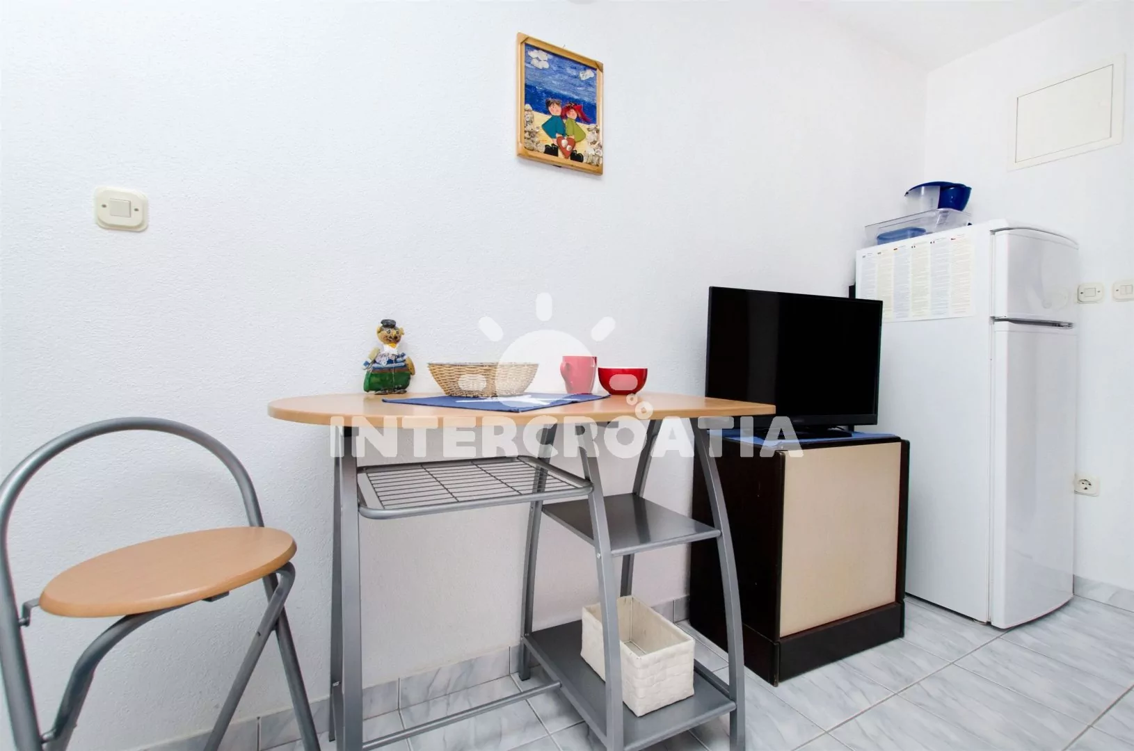 Apartmán typu studio pro 2 až 3 osoby, se nachází v přízemí vilky, disponuje terasou s posezením. Obývací pokoj s kuchyňským koutem vybaveným dvouplotýnkovým sporákem, troubou, nádobím a lednicí s…