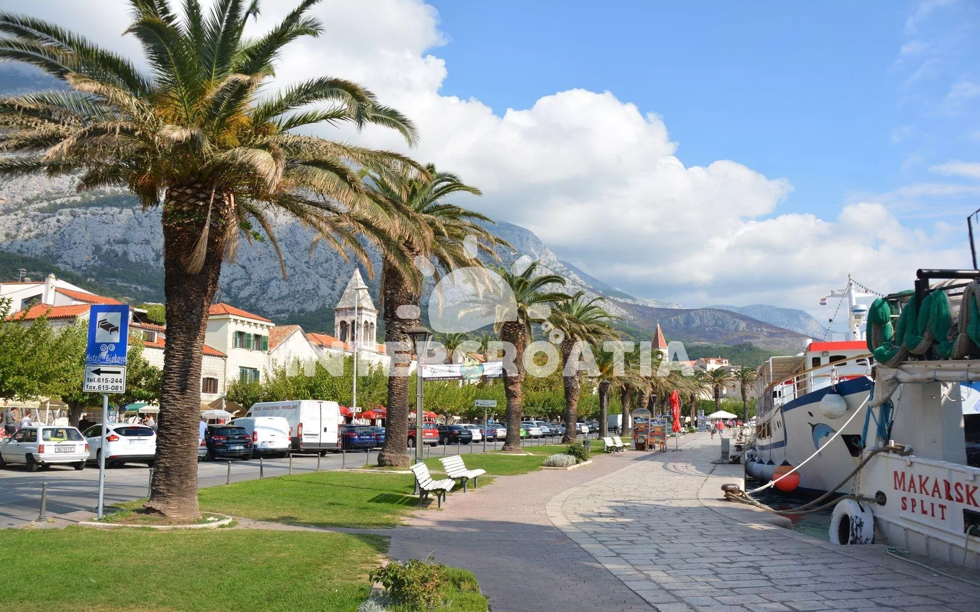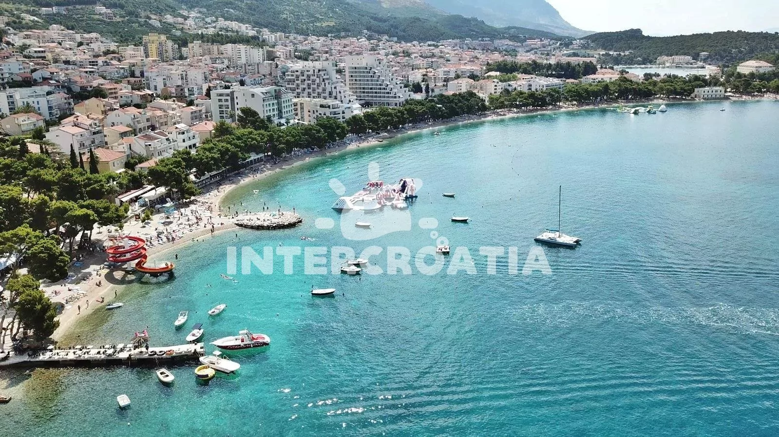 Vzdálenosti: Moře 700 m, pláž (oblázková) 700 m, centrum 1,2 km, market 150 m, pošta 1,2 km, lékárna 100 m, nemocnice 100 m, restaurace 200 m, muzeum 1 km, směnárna 200 m, banka 1 km, přístav 500 m, kotviště pro čluny 1 km, potápěčský klub 500 m, půjčovna motorových člunů 800 m, tenisové kurty 500 m, půjčovna kol 500 m, venkovní bazén 500 m, vnitřní bazén 500 m, diskotéka 500 m, bar 50 m, čerpací stanice 500 m, veřejná doprava 1 km, trajekt (Makarska) 1,2 km, letiště (Split) 90 km.