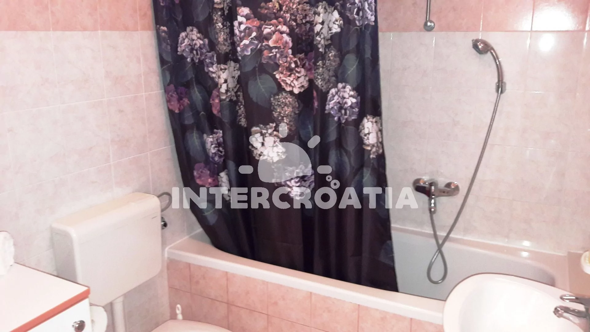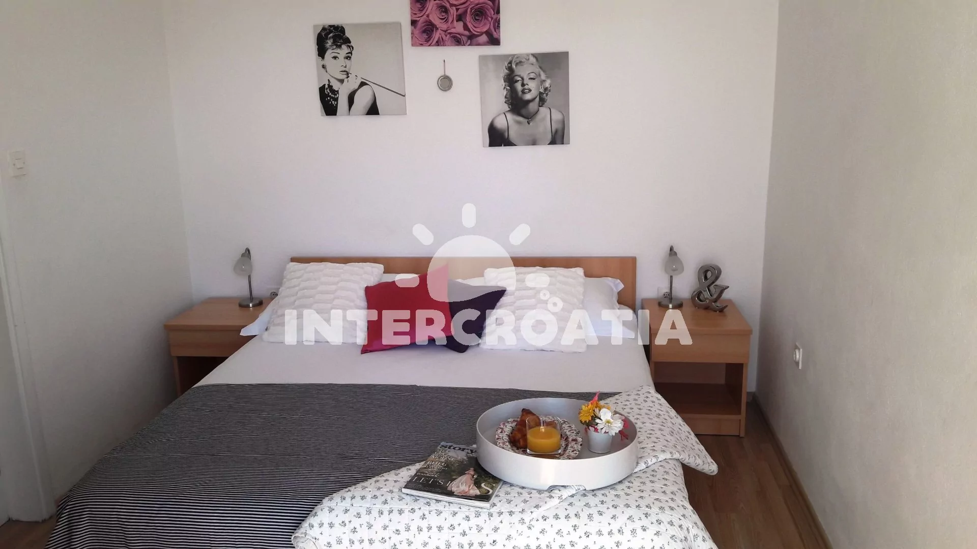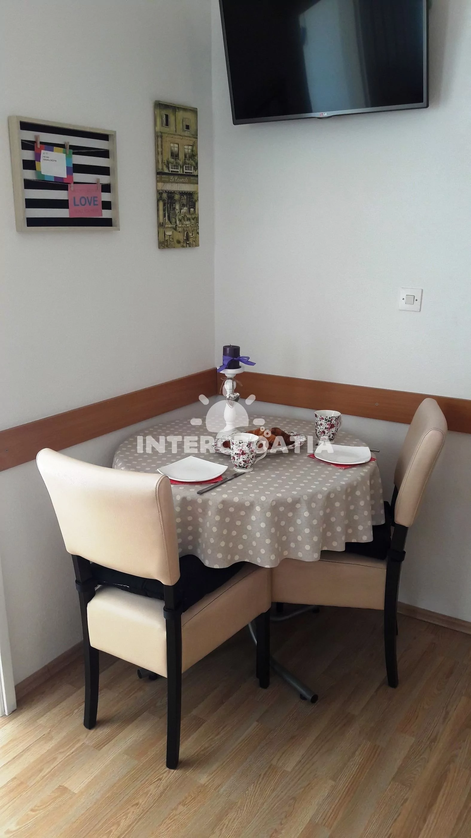 Apartmán pro 2 až 4 osoby, s bočním výhledem na moře a venkovním posezením, se nachází v druhém patře domu. Obývací místnost je spojena s kuchyní. Kuchyňská linka je vybavena elektrickým dvouplotýnkovým sporákem, rychlovarnou konvicí, kávovarem, toustovačem, nádobím a chladničkou s mrazákem. Obývací místnost s jídelním stolem, televizí se satelitním programem a dvěma přistýlkami (extra lůžka pro 2 osoby). Ložnice s jedním dvoulůžkem. Koupelna se sprchovým koutem, umyvadlem, fénem a wc. Hostům je dále k dispozici balkon s posezením, klimatizace, WiFi, žehlička, radio a parkování u objektu zdarma.