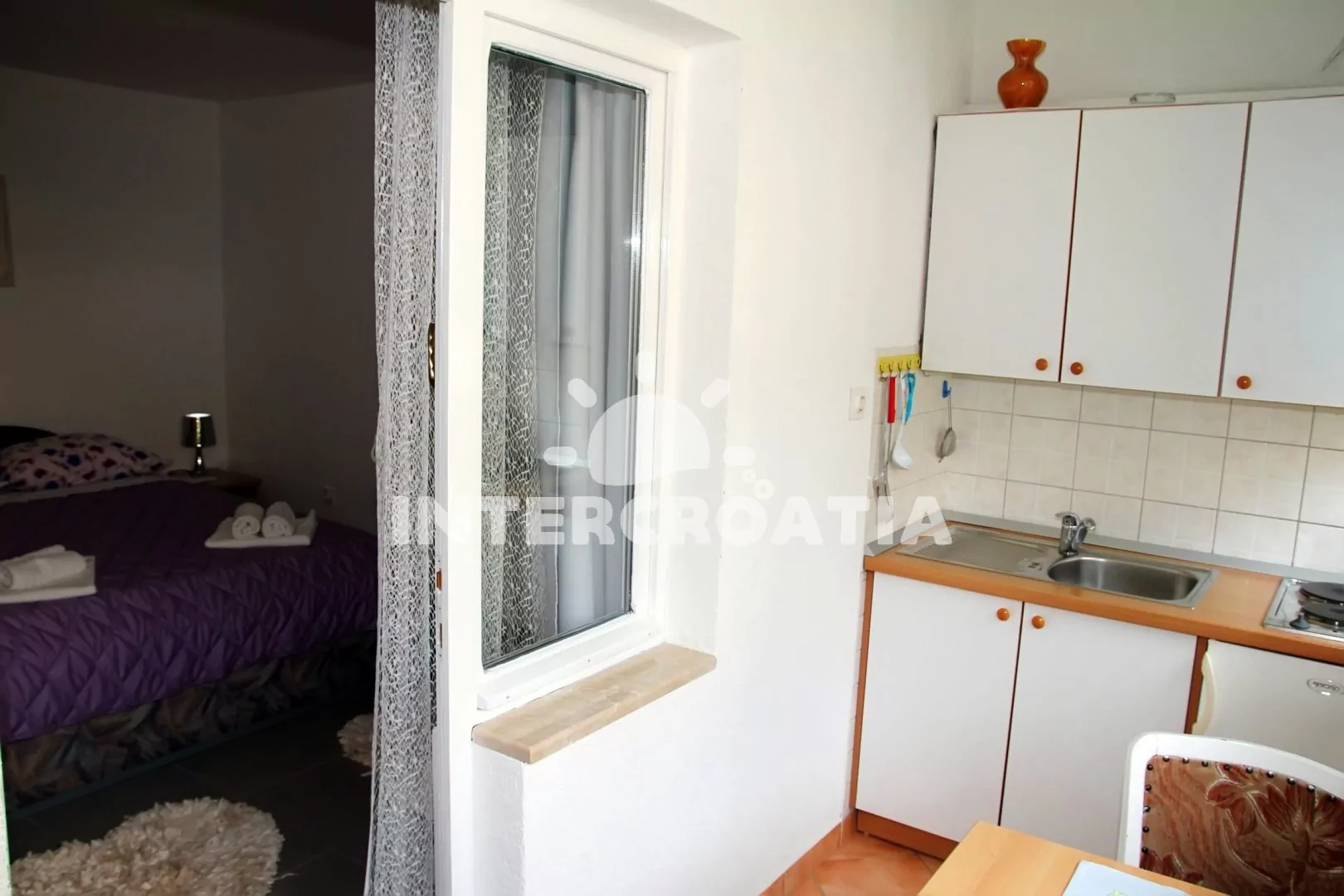 Vzdálenosti: Moře 250 m, pláž (oblázková a větší kamení) 300 m, centrum 350 m, market 50 m, pošta 300 m, lékárna 150 m, nemocnice 1 km, restaurace 50 m, muzeum 300 m, nejbližší národní park Krka, národní park Plitvice 10 km, směnárna 50 m, banka 300 m, přístav 350 m, kotviště pro čluny 350 m, půjčovna kol 50 m, tenisové kurty 1 km, diskotéka 1 km, bar 350 m, čerpací stanice 1,5 km, dopravní silnice 100 m, veřejná doprava 50 m, trajekt (Makarska) 350 m, letiště (Split) 80 km.