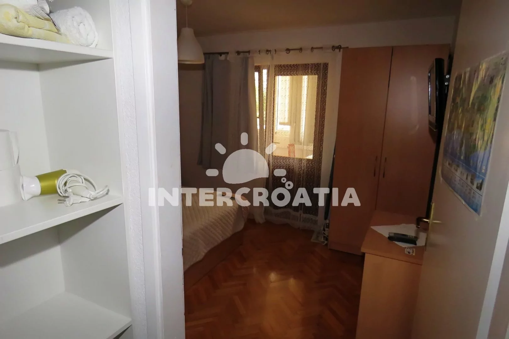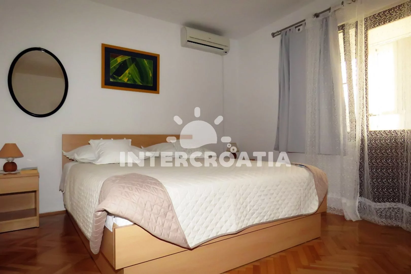 Dvoupokojový apartmán s výhledem na moře, balkonem a venkovním posezením je vhodný pro 2 osoby, umístěný v prvním patře domu. Kuchyňská linka je vybavena elektrickým dvouplotýnkovým sporákem, rychlovarnou konvicí, kávovarem, toustovačem, nádobím, lednicí s mrazákem a jídelním stolem pro 2 osoby. Ložnice s jedním dvoulůžkem, televizí se satelitním programem a klimatizací. Koupelna se sprchovým koutem, umyvadlem, fénem a wc. Hostům je dále k dispozici balkon s posezením, WiFi, žehlička, radio a parkování u objektu zdarma.