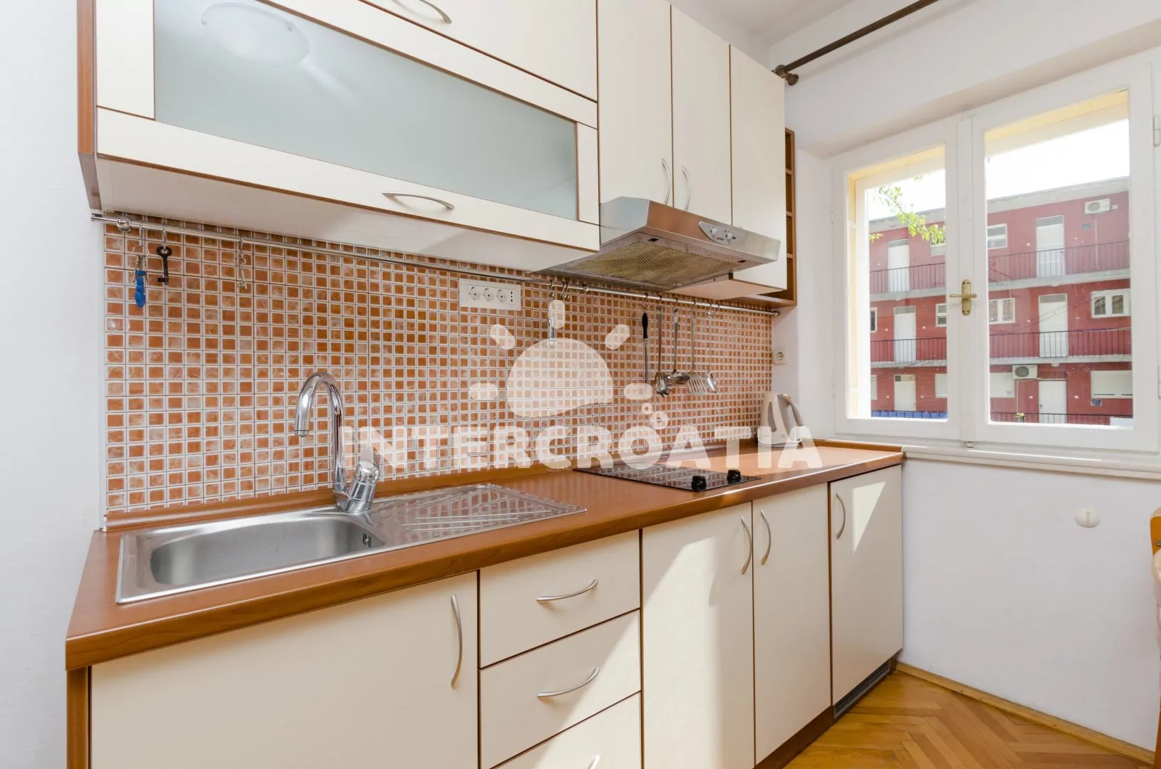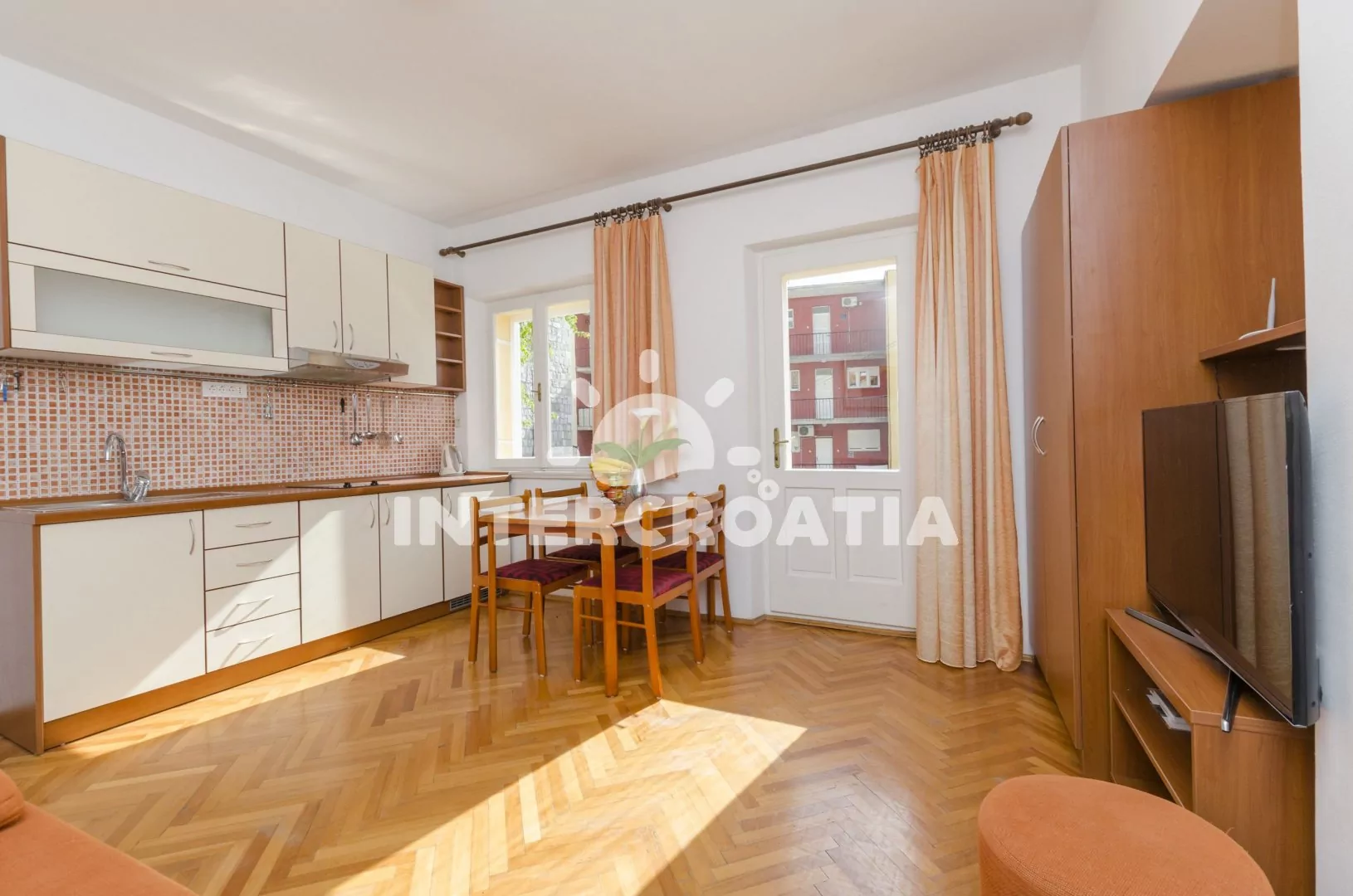 Apartmán s balkonem a výhledem do klidné ulice je umístěný v prvním patře domu. Obývací pokoj je spojený s kuchyní. Kuchyňská linka je vybavena dvouplotýnkovým sporákem, digestoří, rychlovarnou…