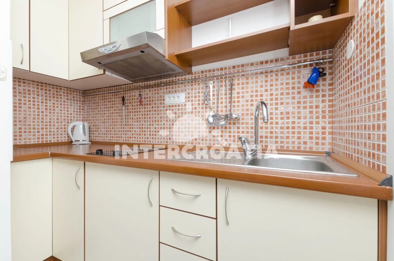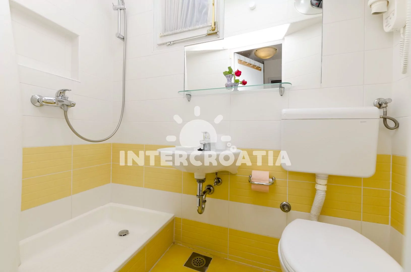 Apartmán s výhledem do klidné ulice je umístěný v druhém patře domu. Obývací pokoj je spojený s kuchyní. Kuchyňská linka je vybavena dvouplotýnkovým sporákem, digestoří, rychlovarnou konvicí, toustovačem, nádobím a lednicí s mrazákem. Obývací pokoj s jídelním stolem pro 4 osoby, pohovkou (rozložitelná na extra lůžko pro 2 osoby), televizí a klimatizací. Ložnice je vybavena jedním dvoulůžkem. Koupelna se sprchovou vanou, umyvadlem a wc.