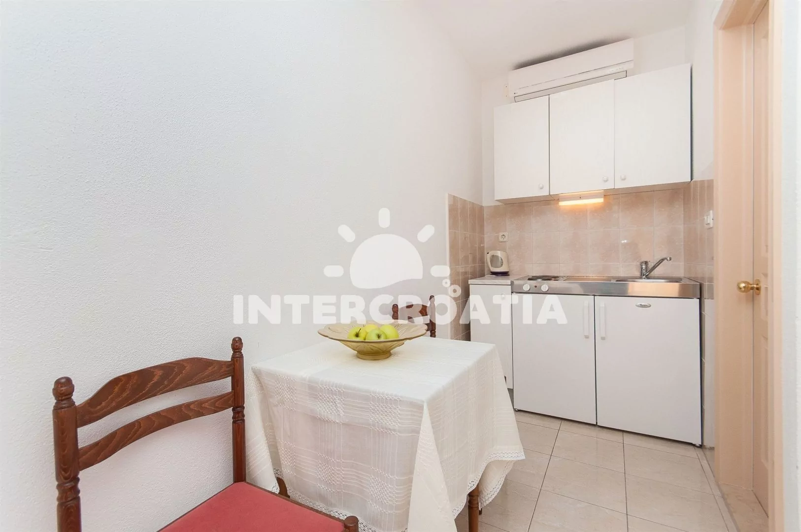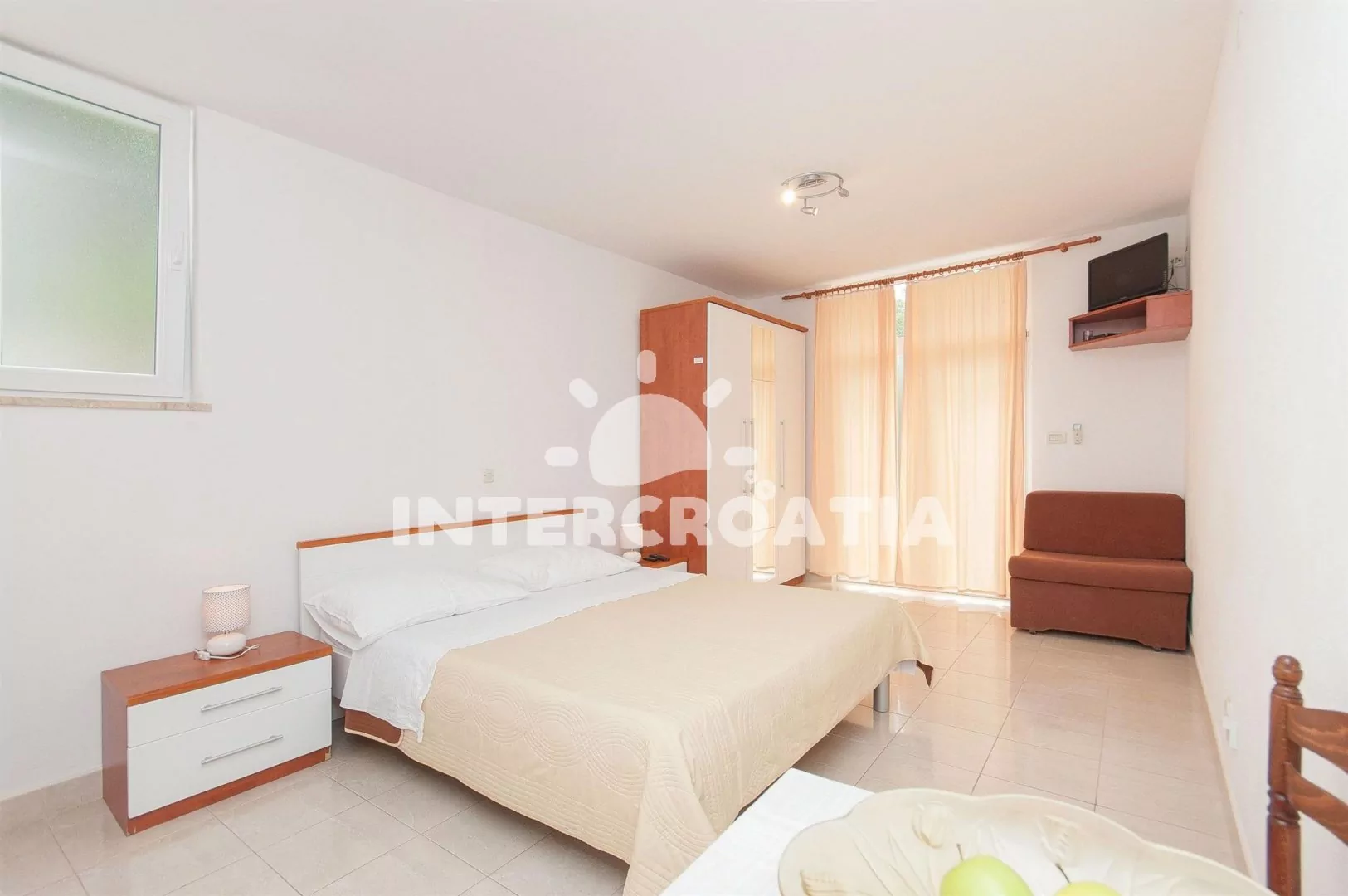 Apartmán typu studio s vlastní terasou a výhledem do zahrady je umístěný v přízemí vily. Kuchyňská linka je vybavena dvouplotýnkovým sporákem, nádobím a lednicí s mrazákem. Obývací pokoj s jídelním stolem pro 2 osoby, televizí se satelitním programem, klimatizací, jedním dvoulůžkem, pohovkou (rozložitelná na extra lůžko pro 1 osobu) a vstupem na terasu. Koupelna se sprchovou vanou, umyvadlem a wc.
