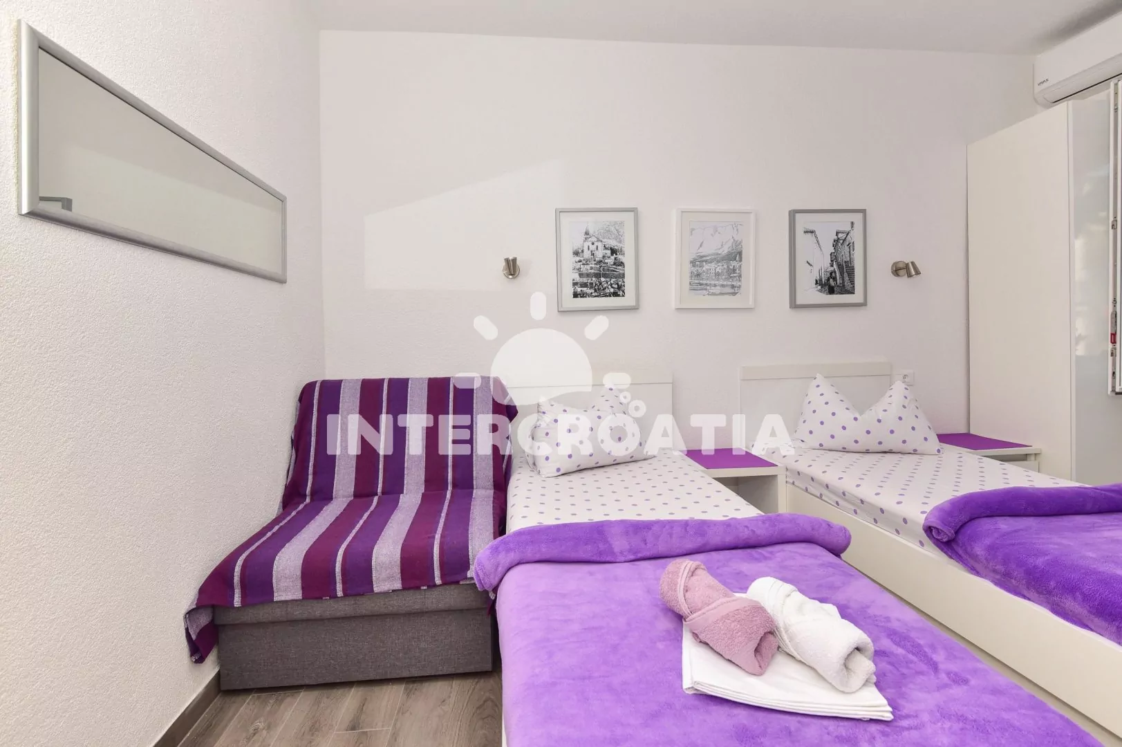 Domácí zvířata nejsou povolena. V ceně pobytu zahrnuto: WiFi, klimatizace, povlečení, ručníky, závěrečný úklid a pobytová taxa. Dětská postýlka k zapůjčení u pronajímatele (služba na požádání). Registrační poplatek (180 Kč/osoba/pobyt, se připočte automaticky k ceně objednávky). Pronajímatel se dorozumí chorvatsky a anglicky.