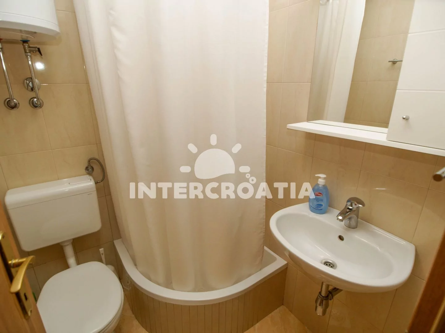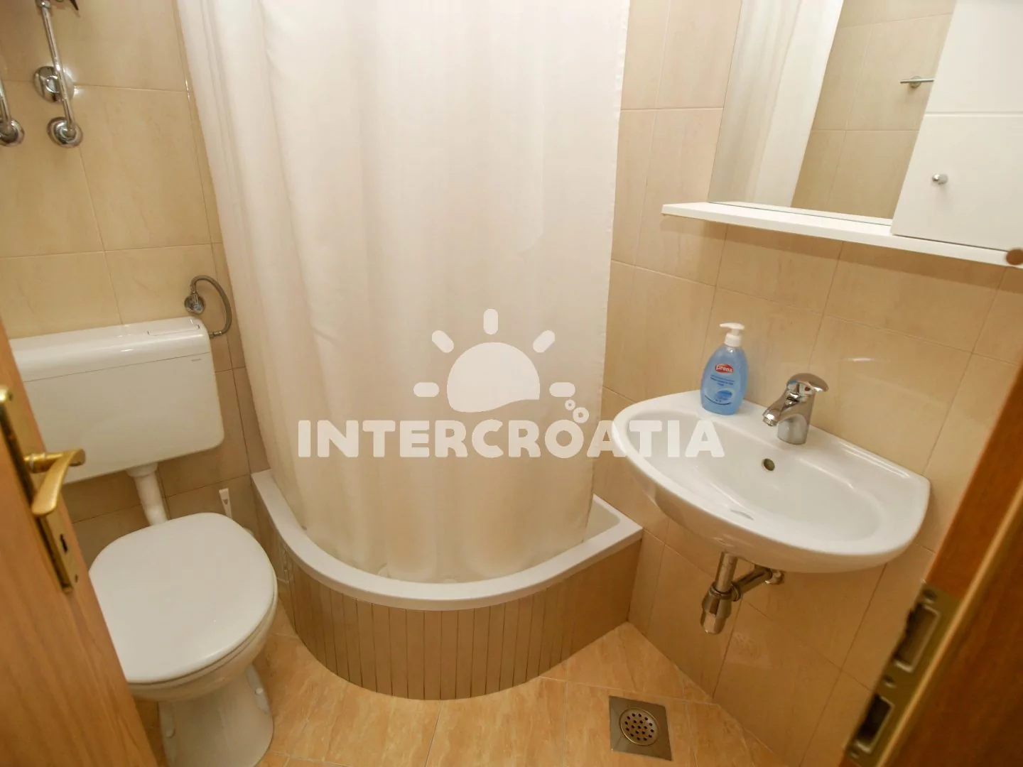 Apartmánový dům ve skvělé lokalitě, nachází se pouze 90 m pěší chůzí od nádherné pláže s malými oblázky. Apartmány s lodžiemi a venkovním posezením. Parkovací místa u objektu.