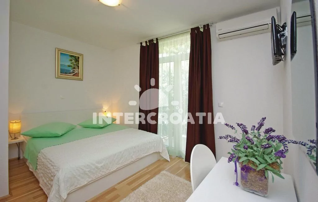 Makarska je proslulé letovisko ležící v srdci Dalmácie, které vás překvapí bohatou turistickou nabídkou. Vaše ubytování se nachází 1,2 km od malebné oblázkové pláže poblíž přístavu. Pláž nabízí krásné prostředí k poklidnému koupání a odpočinku. Navíc si můžete užívat jedinečný pohled na ohromné pohoří Biokovo a zalesněný poloostrůvek Sveti Petar. Rodinám s dětmi doporučujeme navštívit oblázkovou pláž Gradska plaža. Pláž je krásně prostorná se spoustou stínu u stromů. Do moře vede pozvolný vstup, a vy si můžete užívat plavání, potápění a zábavu na vodních atrakcích. Nedaleko najdete restaurace, kavárny a trh. Patříte-li k milovníkům aktivní dovolené, naplánujte si cyklistický nebo pěší výlet do pohoří Biokovo. Z historických staveb v letovisku stojí za zmínku kostel sv. Marka, františkánský klášter, pomník maršála Marmonta, kostel sv. Filipa Neri a kostel sv. Petra z 15. století. Unikátní sbírku mušlí si prohlédněte v Malakologickém muzeu. Během hlavní sezóny se koná festival Makarské léto, kdy se můžete zúčastnit hudebních koncertů, lidových událostí, výstav a zábavného programu. Výlet za přírodními krásami podnikněte k Červenému a Modrému jezeru. Příjemnou procházku slibuje také promenádní cesta, která vede do Brely a Baška Vody. Ostrov Hvar a Korčula patří k oblíbeným lodním exkurzím. Chybí vám ruch metropole? Navštivte Split, kde vás zaujmou cenné památky jako pevnost Gripe, františkánský klášter, Diokleciánův palác, kostel sv. Trojice, palác Karepićů a Cambiů. Těšit se můžete na rozmanité společenské dění. Pravidelně se pořádají hudební vystoupení, folklórní a gastronomické události. Unikátní zážitek z podmořského světa si nenechte ujít v Akváriu.