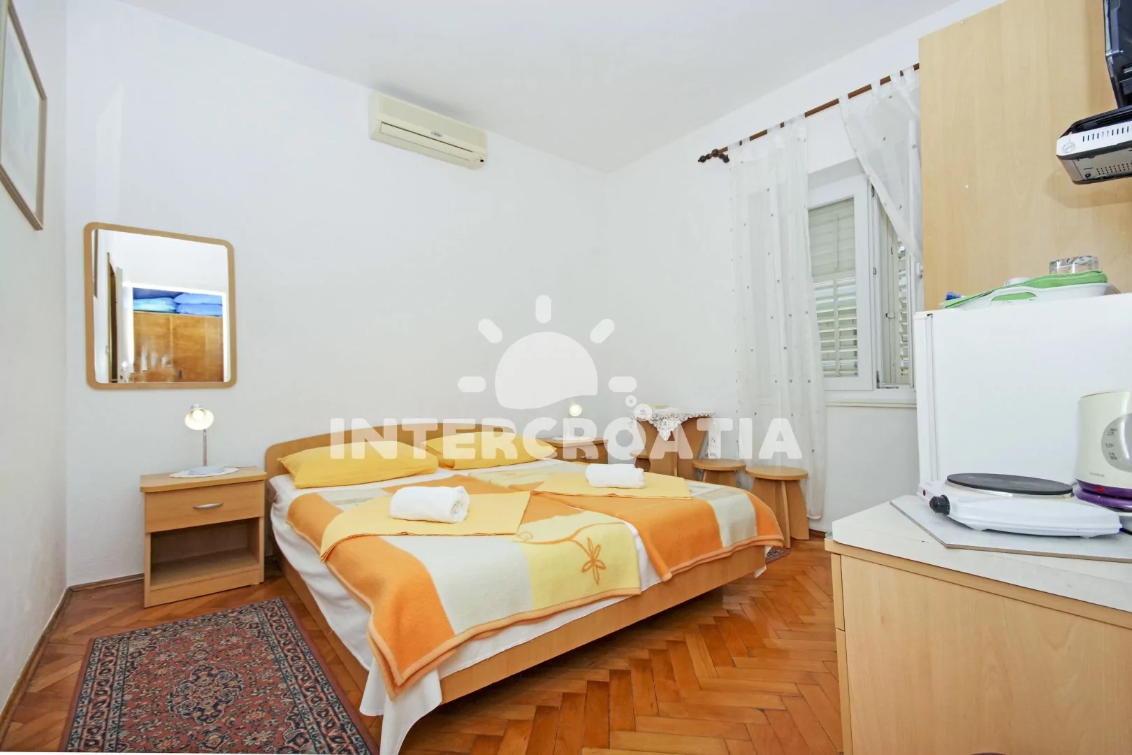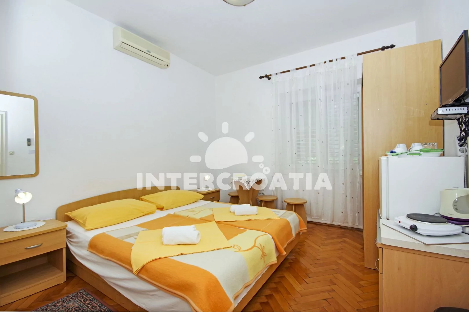 Apartmánový dům se nachází v klidné ulici, jen 150 m pěší chůzí od nádherné pláže s malými oblázky (Gradska plaža) a moře. U domu venkovní bazén s lehátky a posezením. Apartmány jsou klimatizované a disponují lodžiemi s venkovním posezením. Vyhrazená parkovací místa pro automobily přímo u domu.