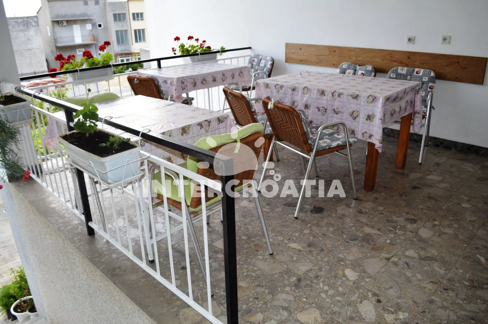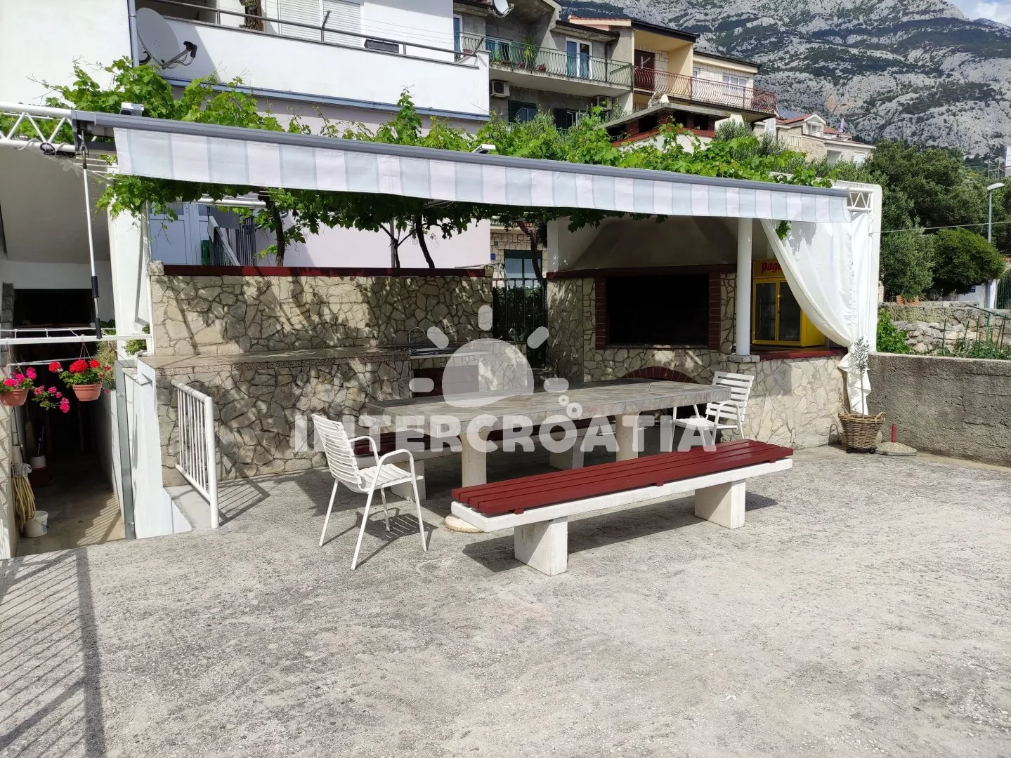 Vzdálenosti: Moře a oblázková pláž 400 m, supermarket, lékárna a veřejná doprava 100 m, restaurace 200 m, směnárna 250 m, bar, přístav a půjčovna motorových člunů 300 m, čerpací stanice 350 m, tenisové kurty 400 m, půjčovna cyklistických kol 600 m, diskotéka 700 m, centrum, banka, potápění a pošta 800 m, muzeum a ambulance 1 km, park Plitvice 4 km, trajekt (Makarska) 800 m, letiště (Split) 80 km.