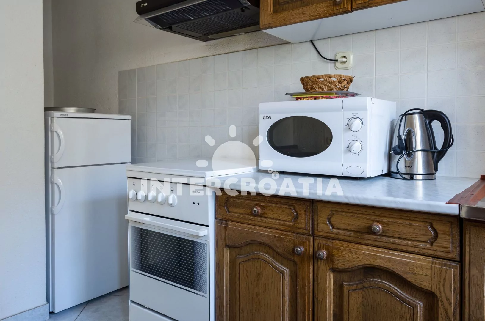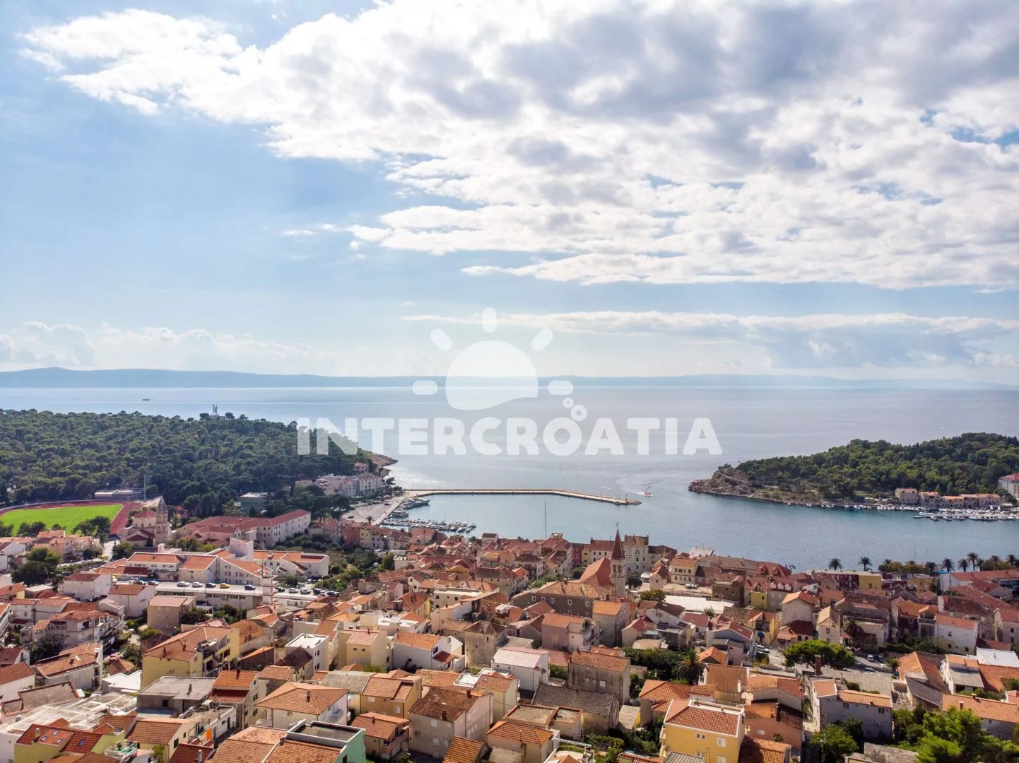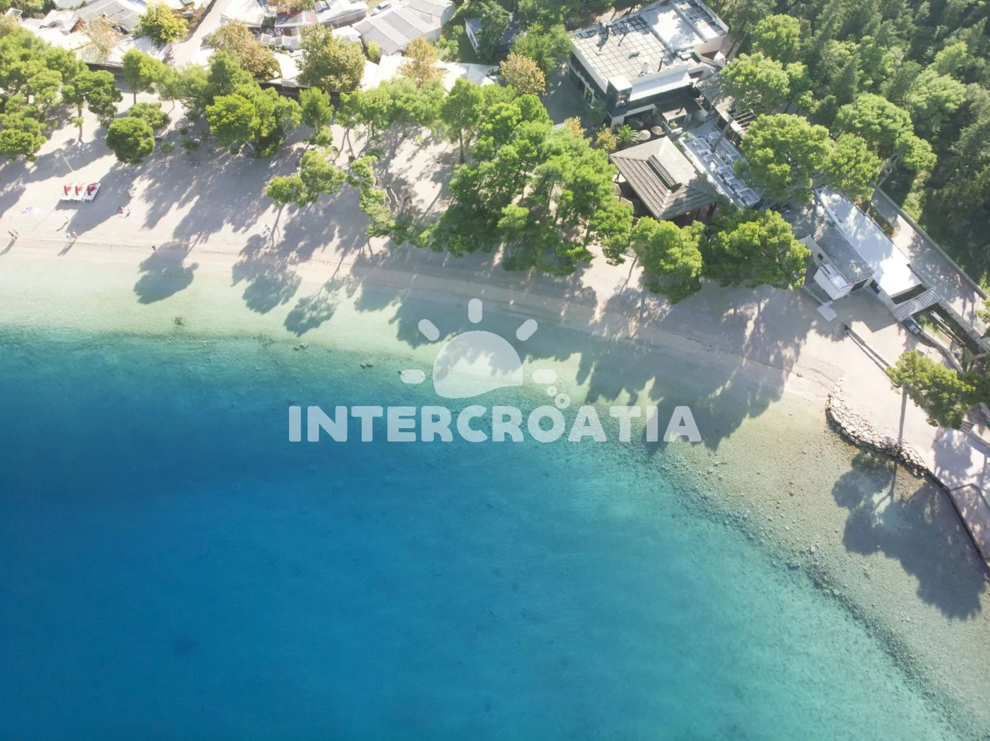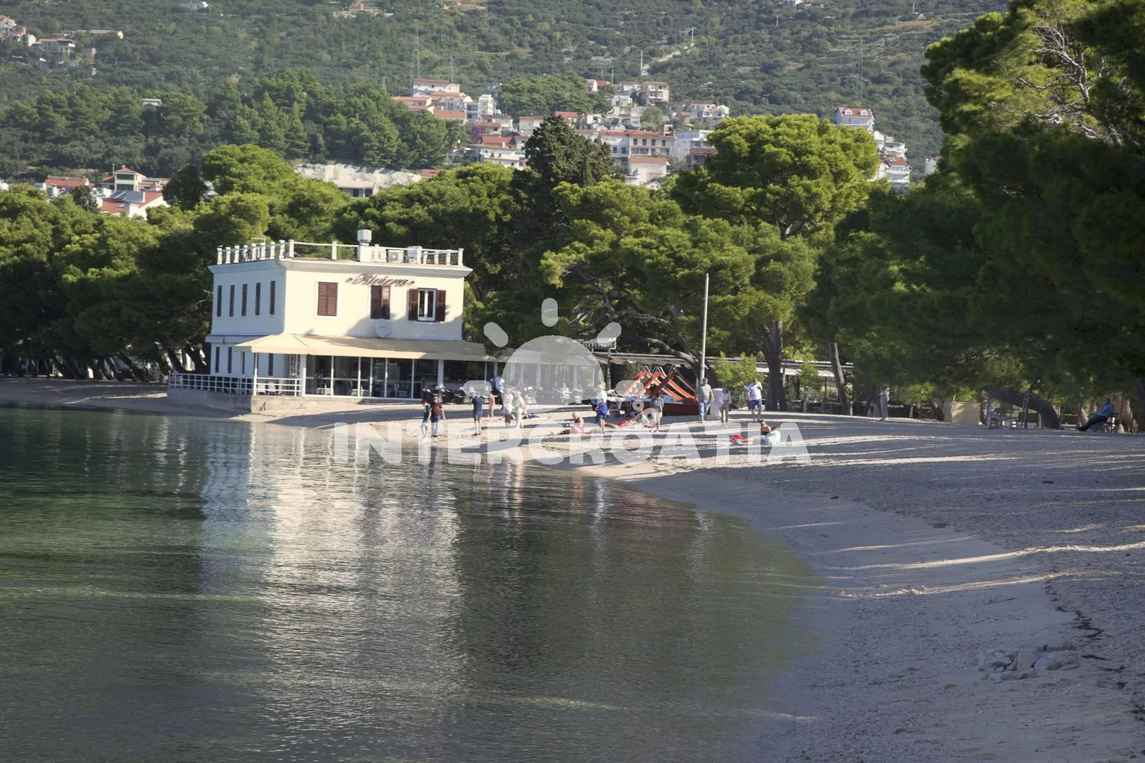 Vzdálenosti: Moře a menší oblázková pláž 580 m, velká oblázková pláž 750 m, supermarket, restaurace a centrum 100 m, bar a směnárna 150 m, veřejná doprava a banka 100 m, lékárna, přístav, muzeum, půjčovna motorových člunů a diskotéka 200 m, ambulance 250 m, půjčovna cyklistických kol a potápění 300 m, pošta 350 m, tenisové kurty 400 m, čerpací stanice 1 km, trajekt (Makarska) 400 m, letiště (Split) 70 km.