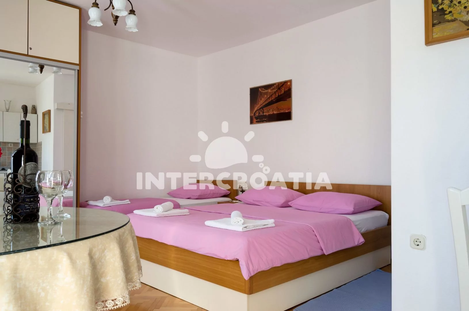 Vzdálenosti: Moře a menší oblázková pláž 580 m, velká oblázková pláž 750 m, supermarket, restaurace a centrum 100 m, bar a směnárna 150 m, veřejná doprava a banka 100 m, lékárna, přístav, muzeum, půjčovna motorových člunů a diskotéka 200 m, ambulance 250 m, půjčovna cyklistických kol a potápění 300 m, pošta 350 m, tenisové kurty 400 m, čerpací stanice 1 km, trajekt (Makarska) 400 m, letiště (Split) 70 km.