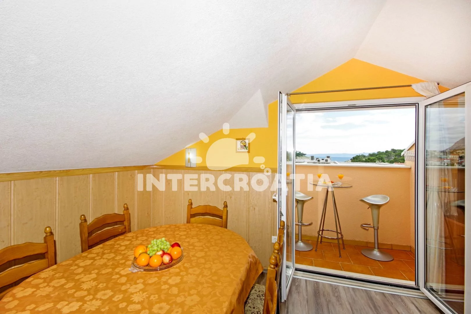 Vzdálenosti: Moře 100 m a oblázková pláž 350 m, supermarket 30 m, restaurace 70 m, bar 30 m, centrum 50 m, lékárna 70 m, směnárna 30 m, banka 20 m, pošta 100 m, veřejná doprava 300 m, půjčovna cyklistických kol 50 m, půjčovna motorových člunů 100 m, ambulance a mini golf 500 m, čerpací stanice 1 km, tenisové kurty 1,2 km, diskotéka 800 m, potápění 1 km, přístav 2 km, trajekt (Makarska) 30 m, letiště (Split) 90 km.
