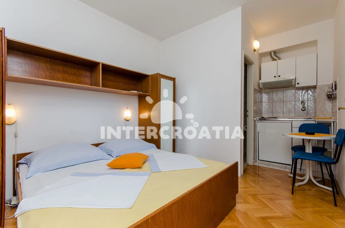 Vzdálenosti: Moře 150 m, pláž 120 m (oblázky), půjčovna kol 30 m, směnárna 30 m, supermarket 50 m, bar 50 m, veřejná doprava 80 m, restaurace 100 m, půjčovna motorových člunů 150 m, banka 300 m, centrum 300 m, lékárna 300 m, pošta 400 m, trajekt 500 m, muzeum 600 m, ambulance 700 m, diskotéka 700 m, čerpací stanice 1 km, tenisové kurty 1 km, letiště (Split) 90 km,
