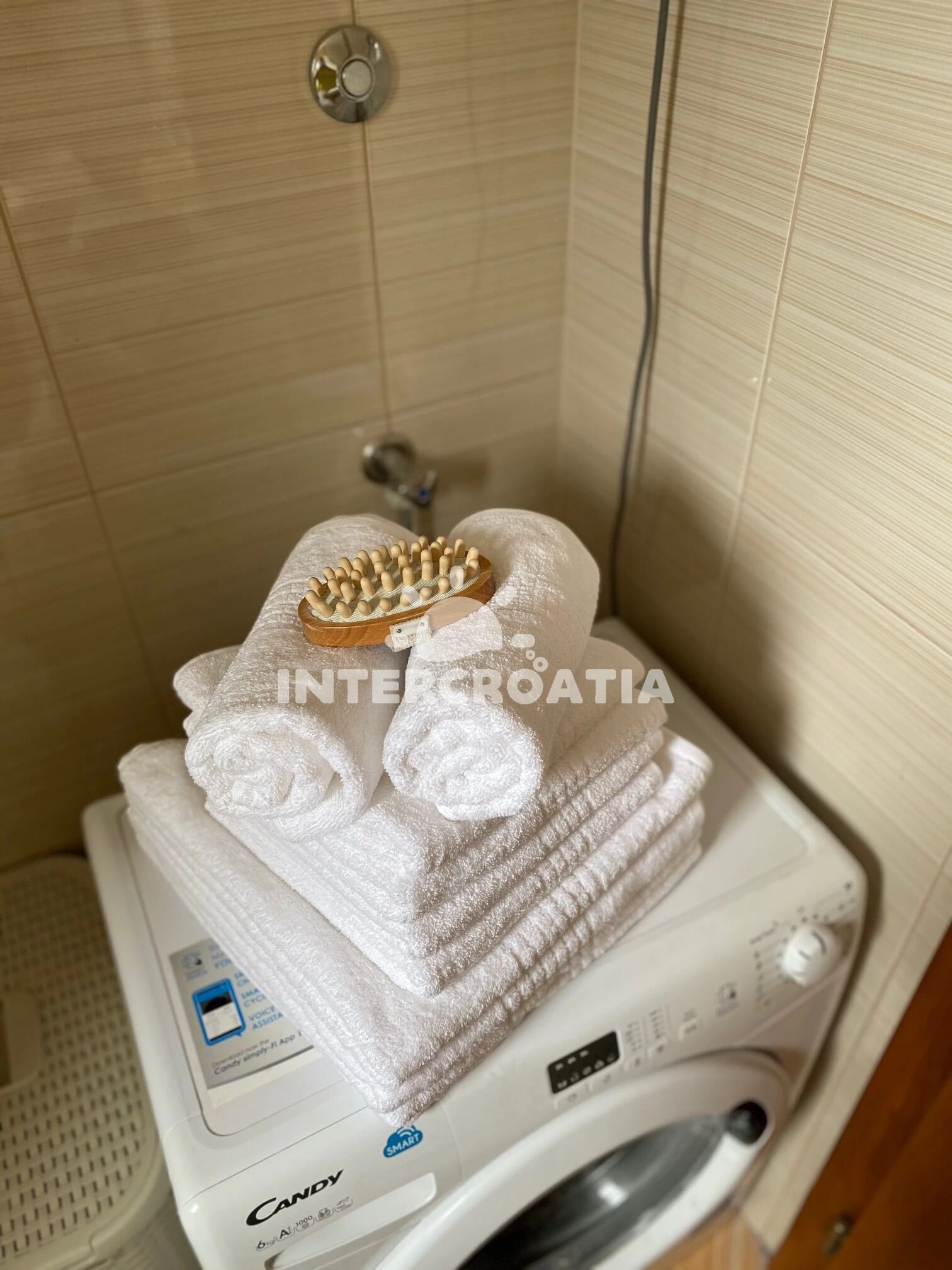 Domácí zvířata jsou povolena ( bezplatně ). V ceně pobytu zahrnuto: WiFi, klimatizace (část místností), topení, povlečení, ručníky, pračka, dětská postýlka (služba na požádání), závěrečný úklid, pobytová taxa. Host je povinen v den příjezdu do ubytování složit vratnou zálohu celkem 150 €, kterou dostane zpět v den odjezdu, pokud nepoškodil ubytovací jednotku. Pronajímatel se dorozumí chorvatsky, anglicky, německy, Pronajímatel vás bude očekávat po 14:00. V den odjezdu je nutné vyklidit apartmán do 10:00.