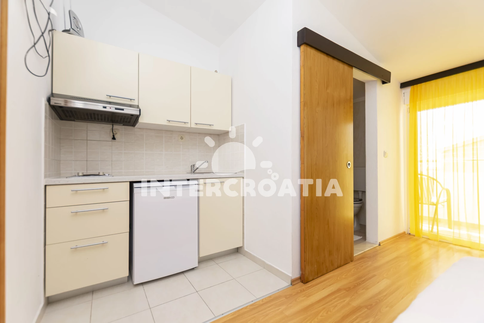 Vzdálenosti: Moře 300 m, pláž 350 m (oblázky), veřejná doprava 295 m, bar 350 m, restaurace 400 m, supermarket 500 m, pošta 920 m, marina 1 km, centrum 1 km, lékárna 1 km, směnárna 1 km, ambulance 1 km, potápění 1,1 km, čerpací stanice 1,5 km, banka 5 km, půjčovna motorových člunů 5 km, půjčovna kol 5 km, trajekt (Split) 33 km, diskotéka 33 km, letiště (Split) 50 km, park Plitvice 100 km,
