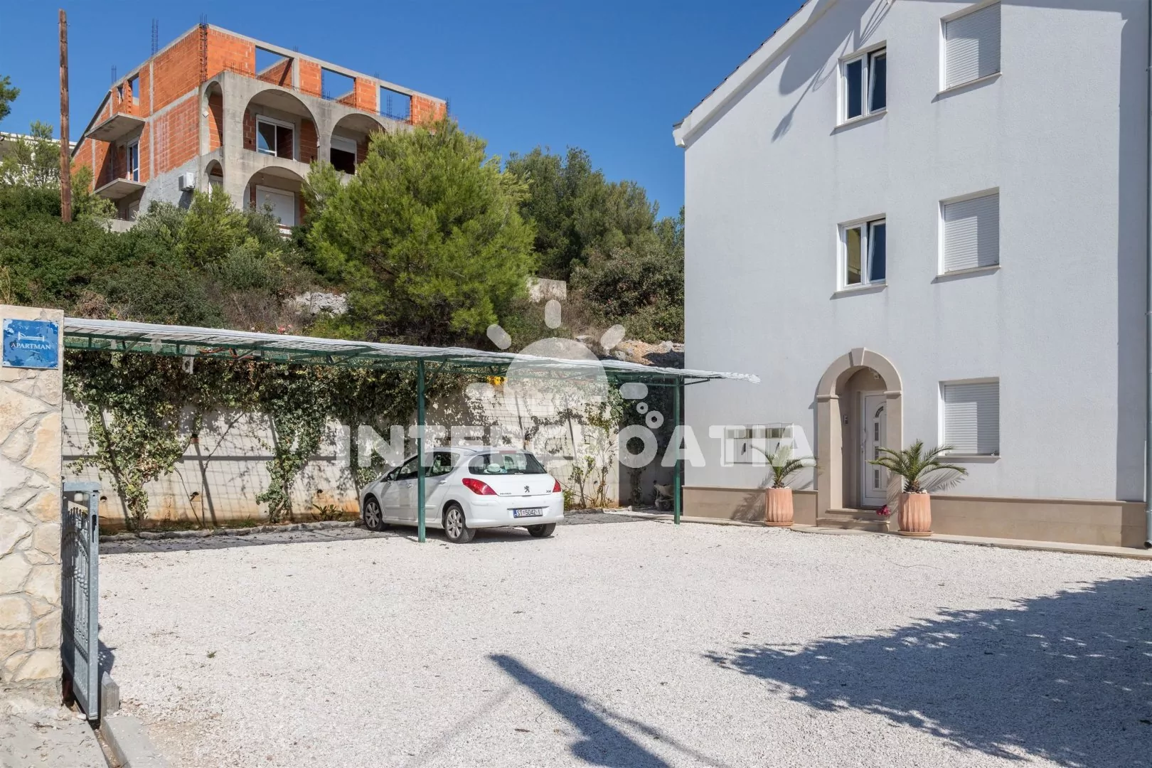 Vzdálenosti: Moře 230 m, pláž (oblázková a betonové desky) 230 m, centrum 1 km, market 350 m, pošta 1 km, lékárna 1 km, nemocnice 1 km, restaurace 350 m, muzeum 14 km, směnárna 1 km, banka 14 km, přístav 400 m, kotviště pro čluny 400 m, půjčovna motorových člunů 400 m, potápěčský klub 14 km, půjčovna kol 1 km, tenisové kurty 12 km, diskotéka 12 km, bar 230 m, čerpací stanice 12 km, veřejná doprava 230 m, trajekt (Split) 40 km, letiště (Split) 14 km.