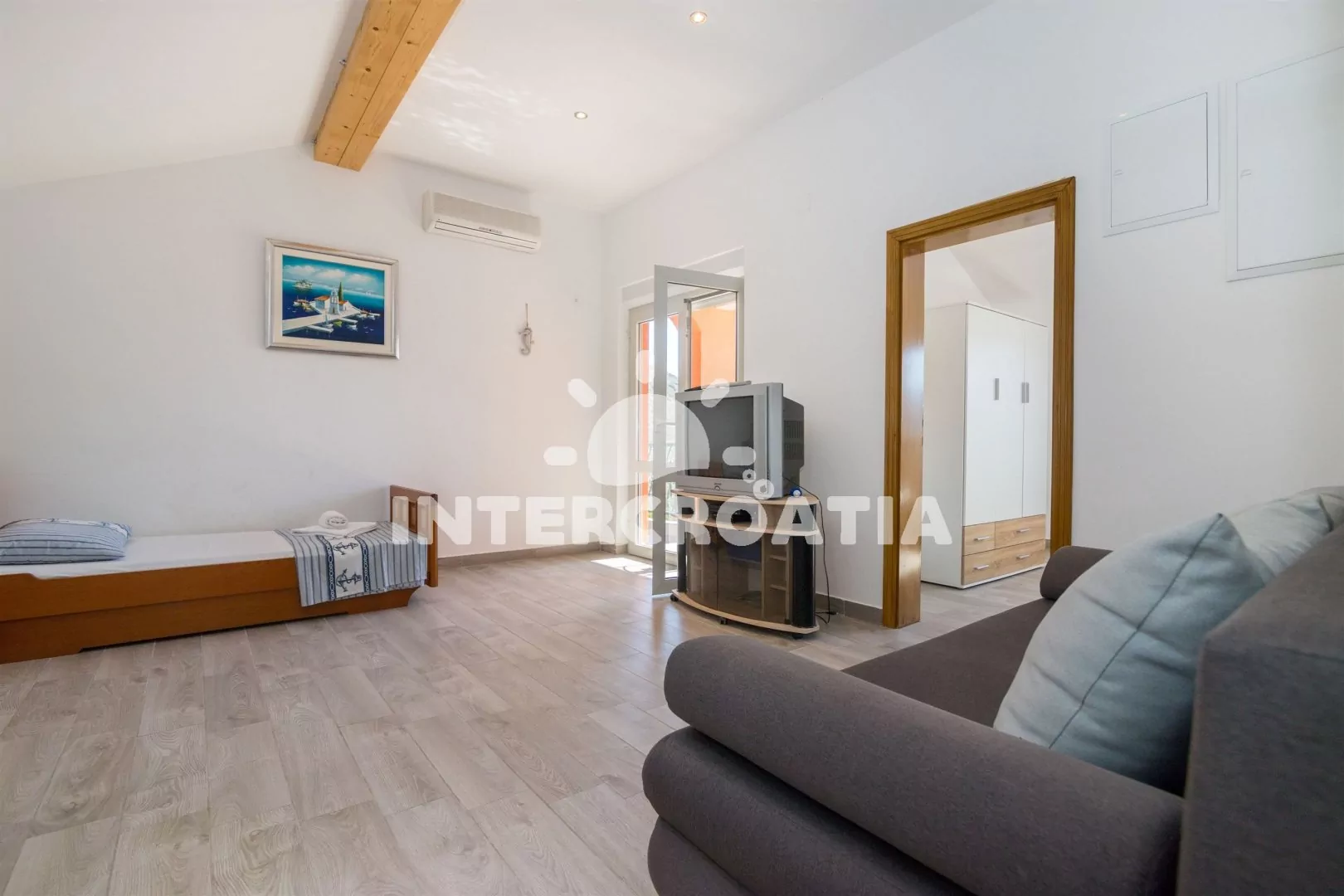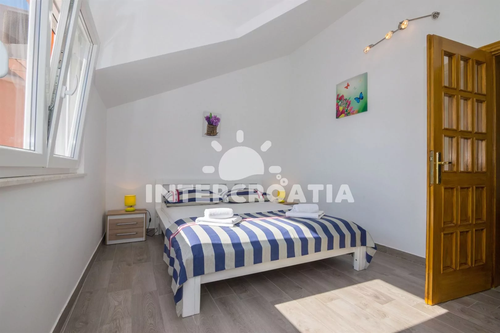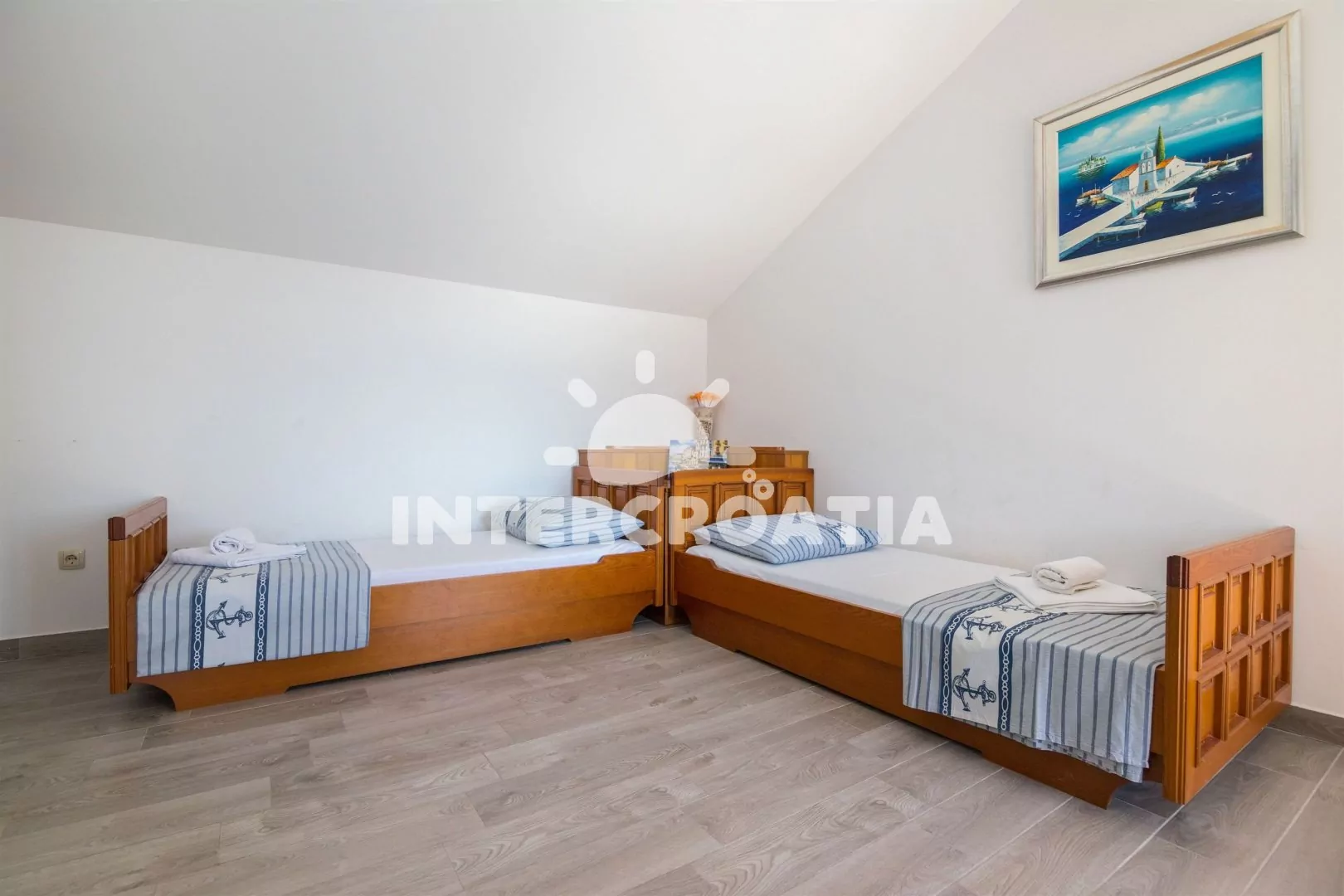 Třípodlažní apartmánový domek s balkonem, výhledem na moře, grilem a dobrou dostupností na pláž.