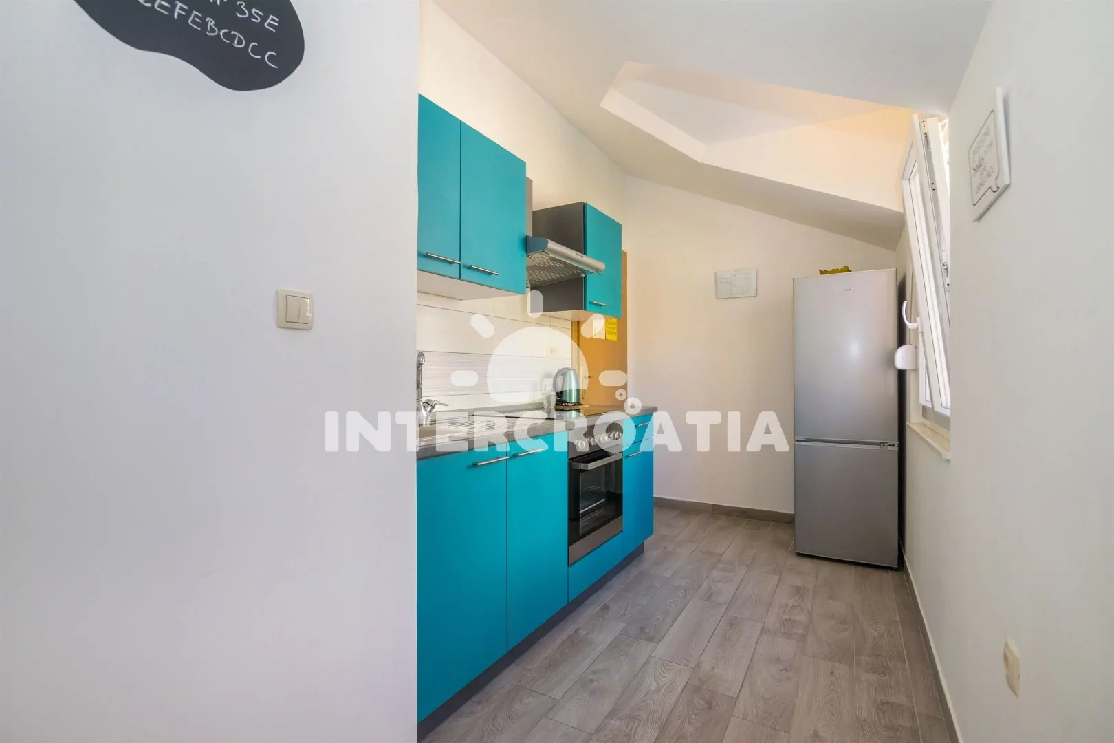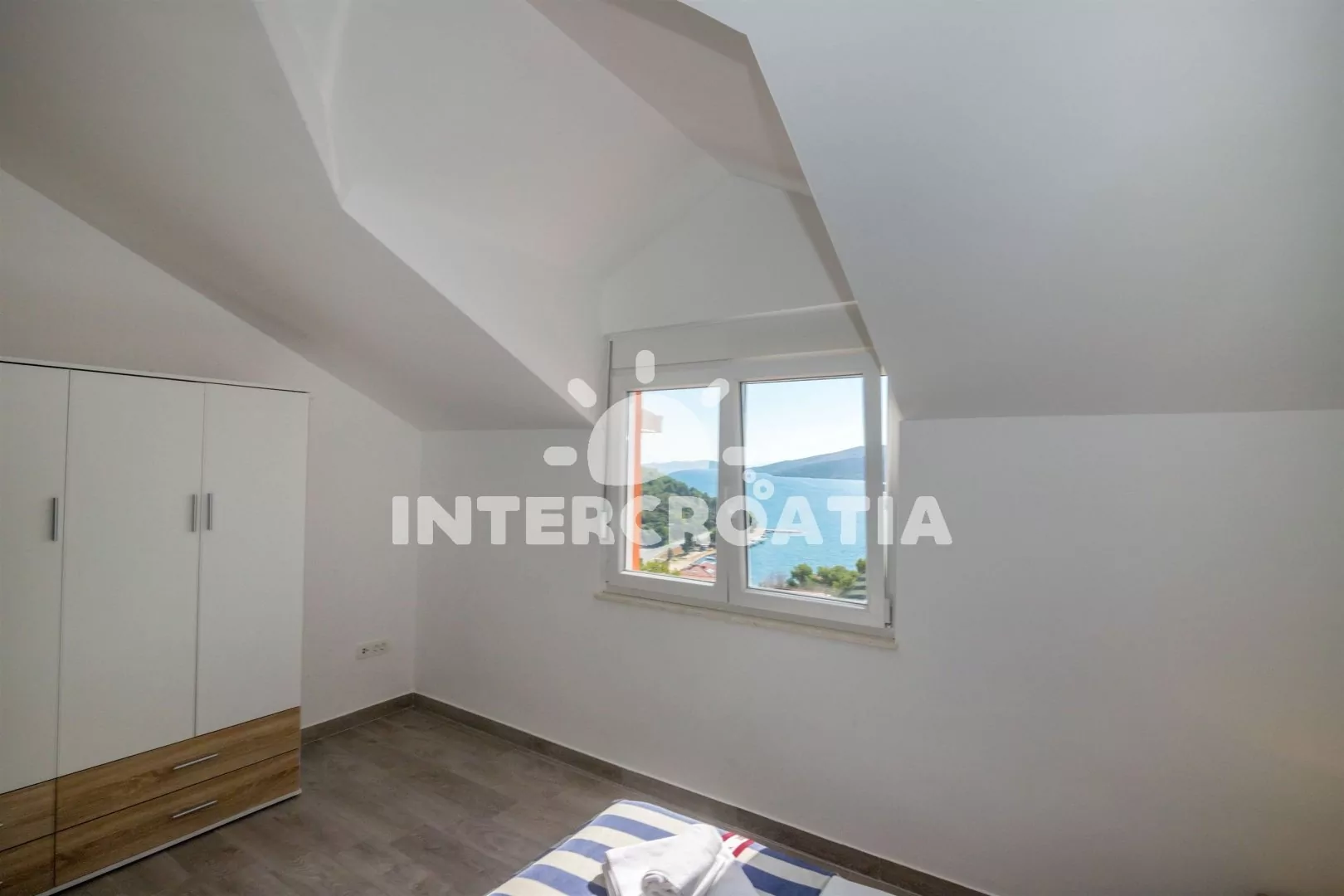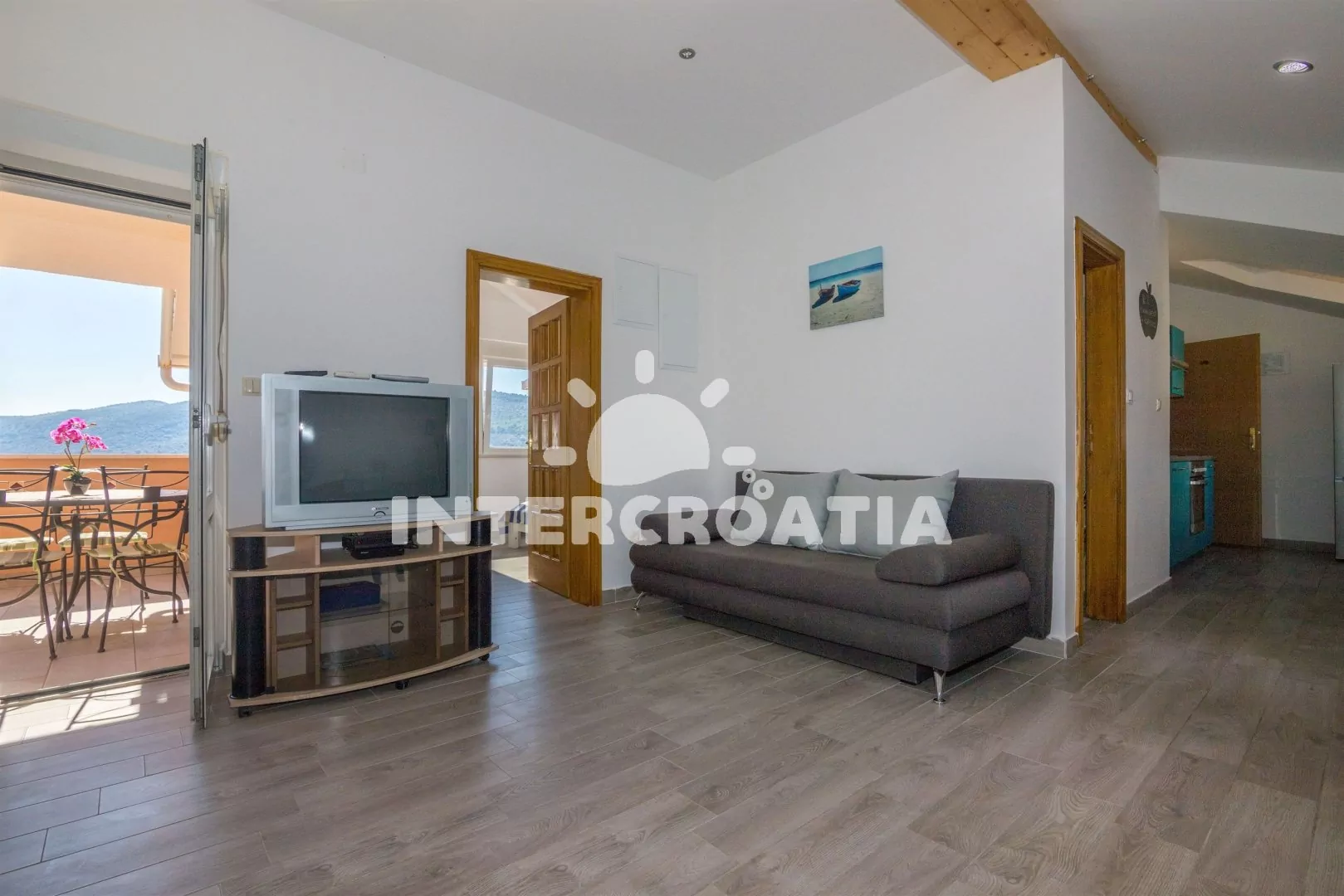 Třípodlažní apartmánový domek s balkonem, výhledem na moře, grilem a dobrou dostupností na pláž.