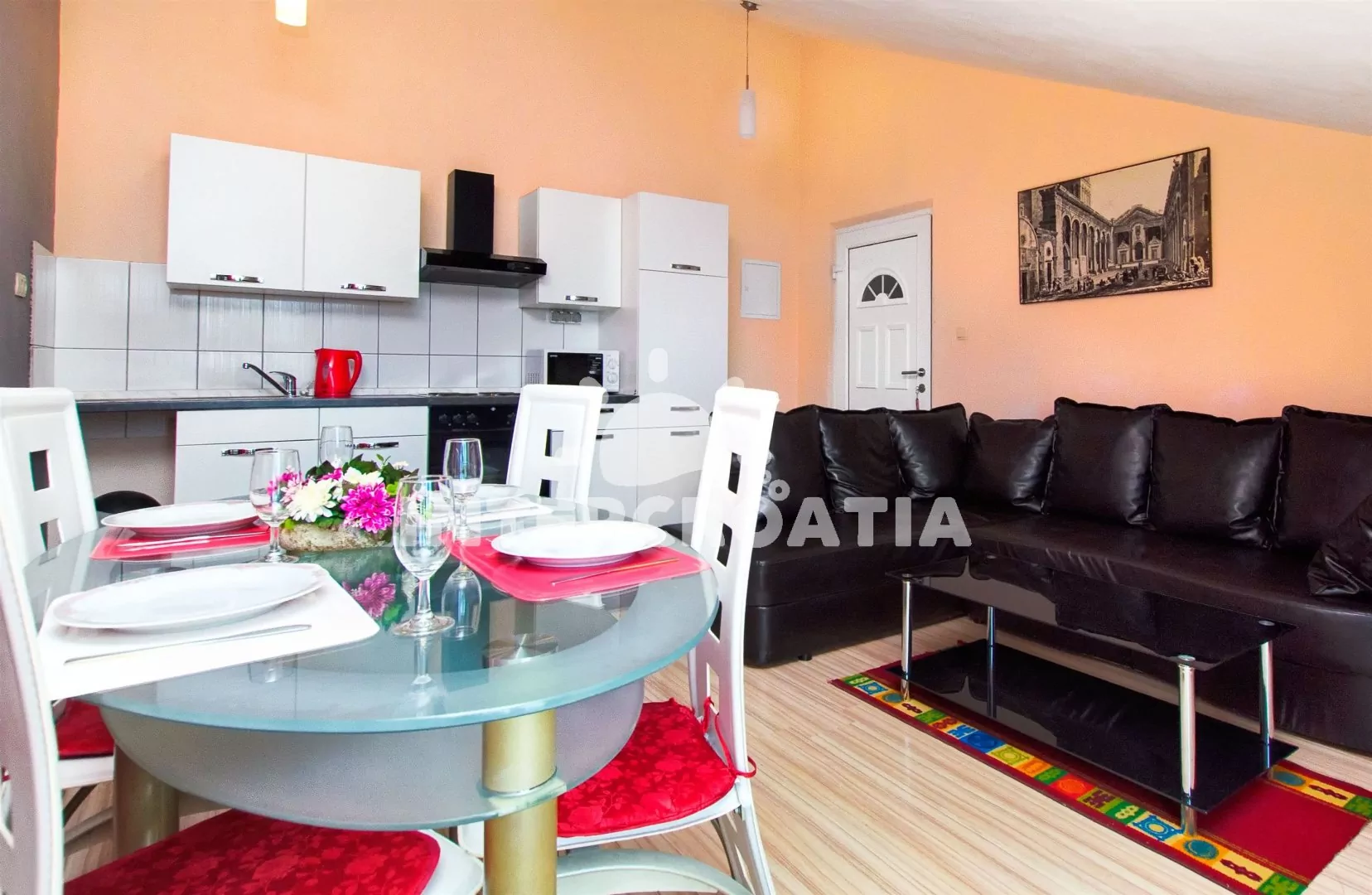 Ve Střední Dalmácii, 12,5 km západním směrem od romantické destinace Trogir a 21 km na jihovýchod od malebného městečka Primošten. Apartmán se nachází téměř na pláži (30 m).