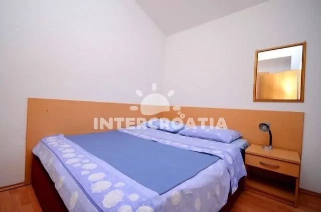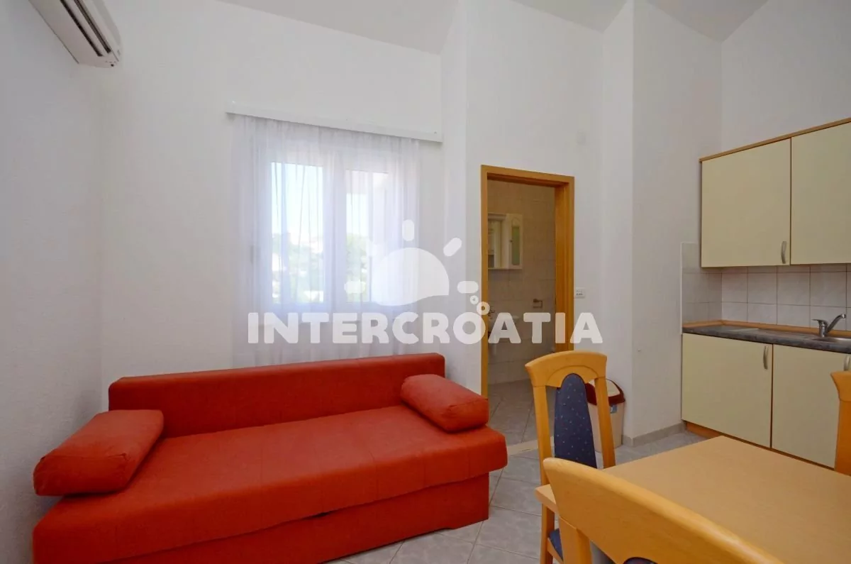 Apartmán (30 m2) se nachází ve třetím patře domu. Apartmán má 1 ložnici a je vhodný pro 2 až 4 osoby. Obývací pokoj je spojený s kuchyní. Kuchyňská linka je vybavena sporákem, digestoří, kávovarem, nádobím a lednicí s mrazákem. Obývací pokoj s jídelním stolem pro 3 osoby, pohovkou (rozložitelná na extra lůžko pro 2 osoby), televizí se satelitním programem a klimatizací. Ložnice s jedním dvoulůžkem. Koupelna se sprchovým koutem, umyvadlem a wc. Hostům je k dispozici parkování u objektu zdarma.