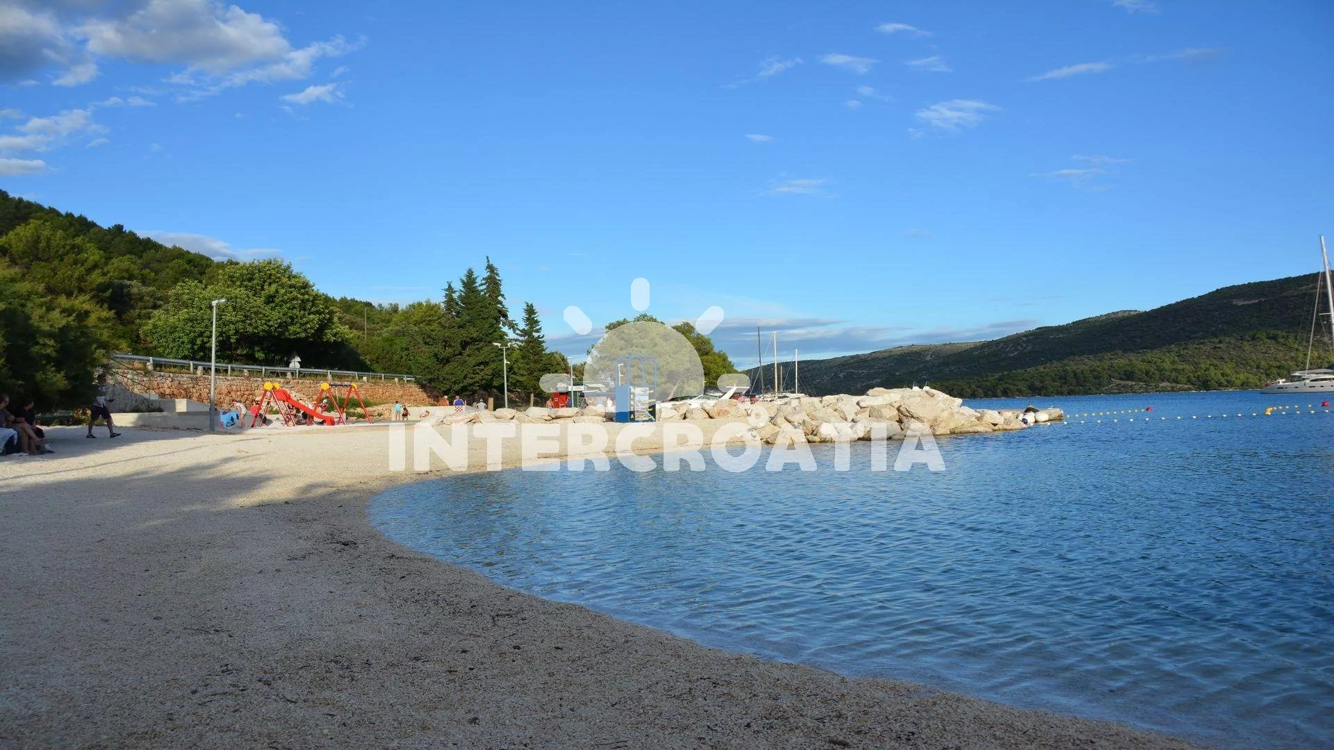 Vzdálenosti: Moře a pláž 90 m, centrum 1,2 km, supermarket 70 m, veřejná doprava, bar 120 m, lékárna, ambulance, směnárna, banka, pošta, restaurace, přístav 1 km, čerpací stanice, muzeum, půjčovna kol a motorových člunů, potápění 10 km, letiště, diskotéka 20 km, minigolf, tenis, venkovní a vnitřní bazén 6 km, trajekt 44,9 km.