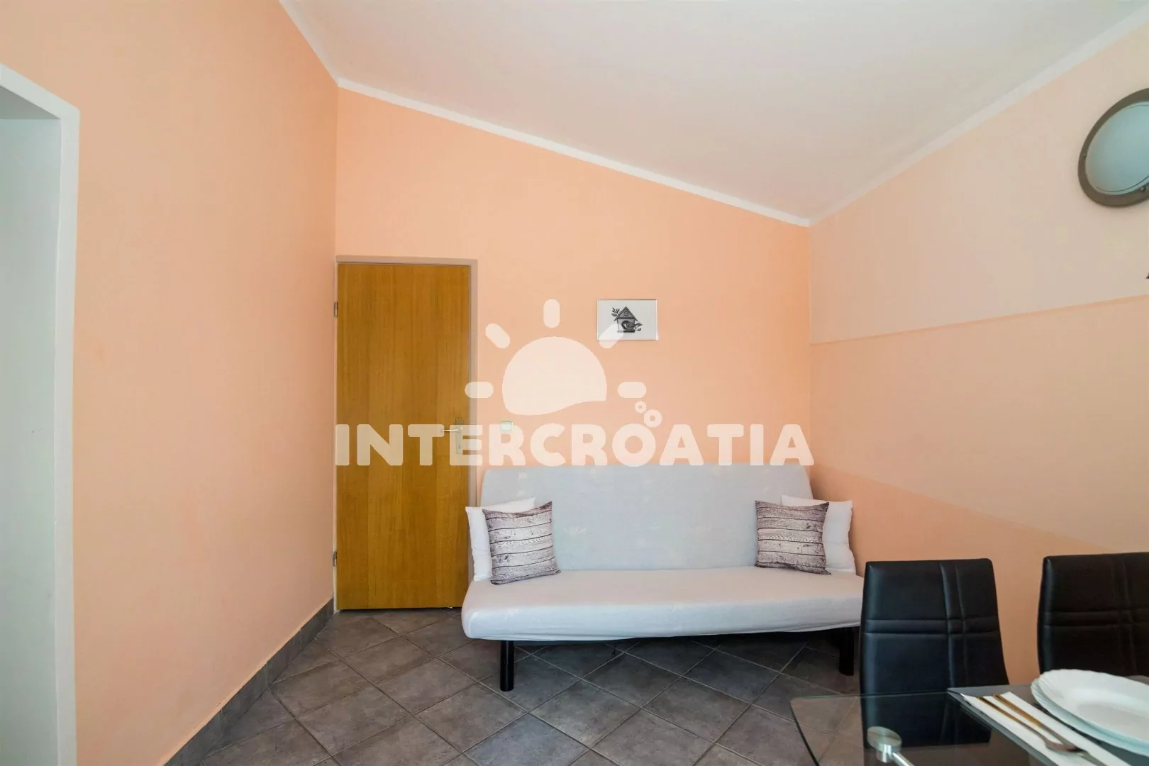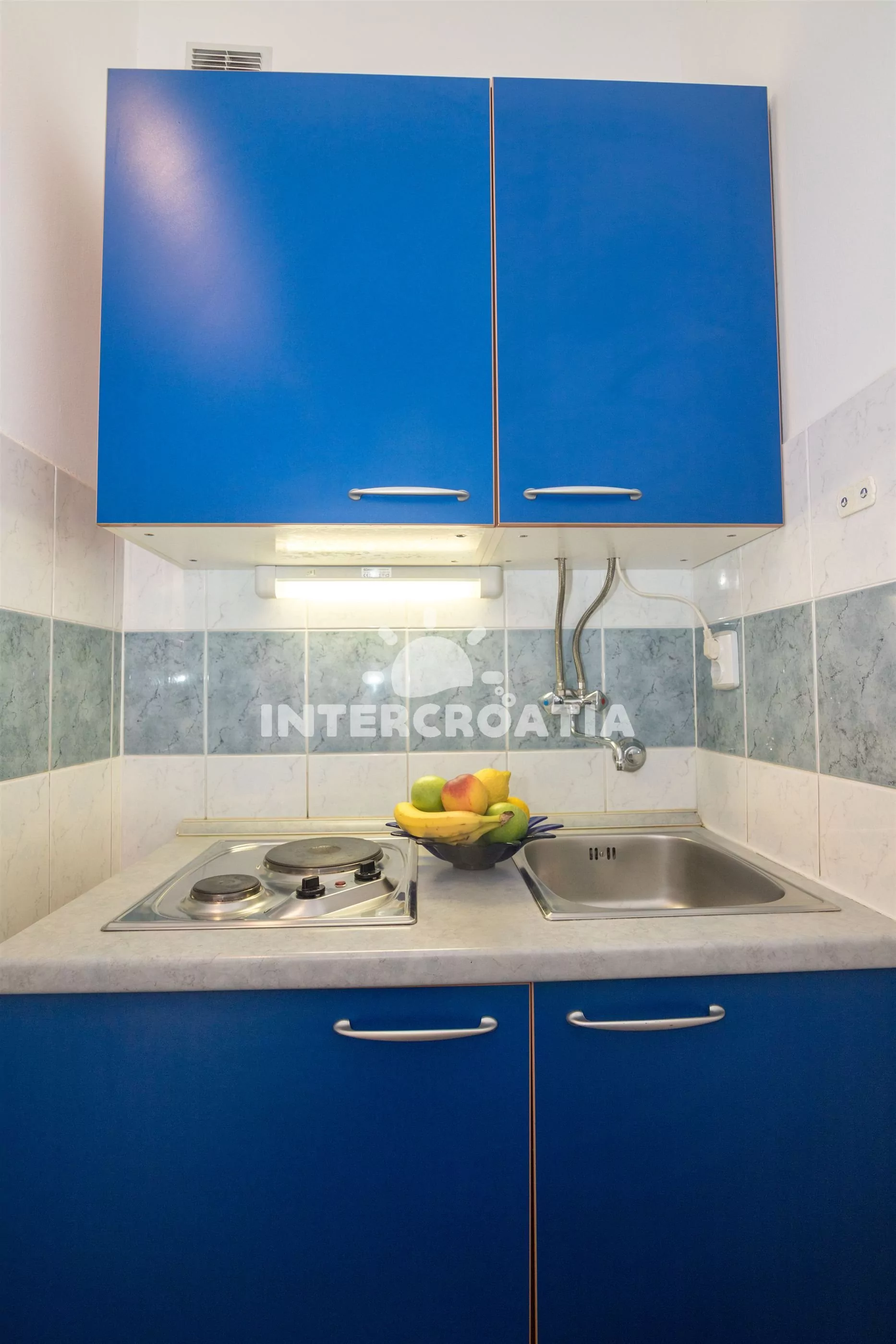 Apartmán pro 2 až 4 osoby, s výhledem na moře a terasou se nachází v prvním patře domu. Obývací pokoj je spojený s kuchyní. Kuchyňská linka je vybavena sporákem, rychlovarnou konvicí, kávovarem, nádobím a lednicí s mrazákem. Obývací pokoj s jídelním stolem pro 4 osoby, pohovkou (rozložitelná na extra lůžko pro 2 osoby, televizí se satelitním programem, radiem, klimatizací a vstupem na terasu. Ložnice je vybavena jedním dvoulůžkem. Koupelna se sprchovým koutem, umyvadlem, fénem a wc. Hostům je k dispozici parkování u objektu zdarma.