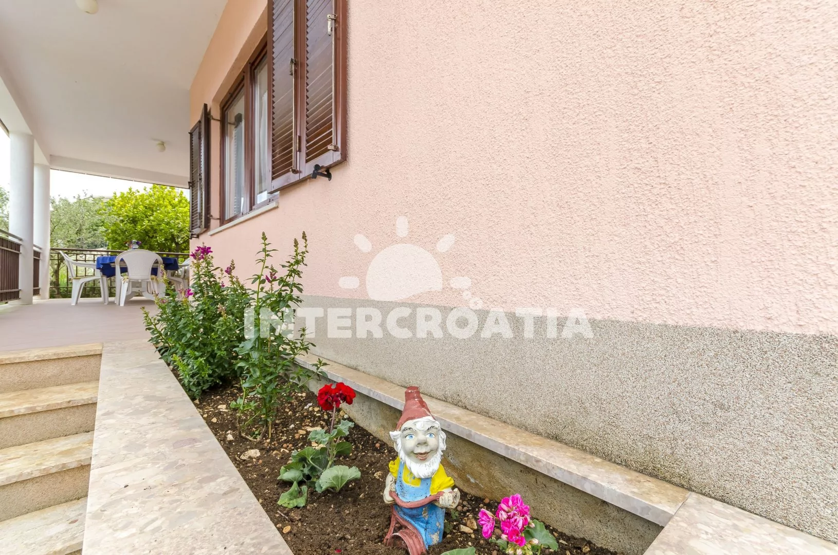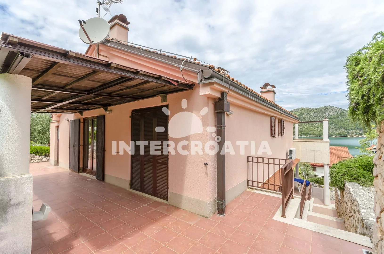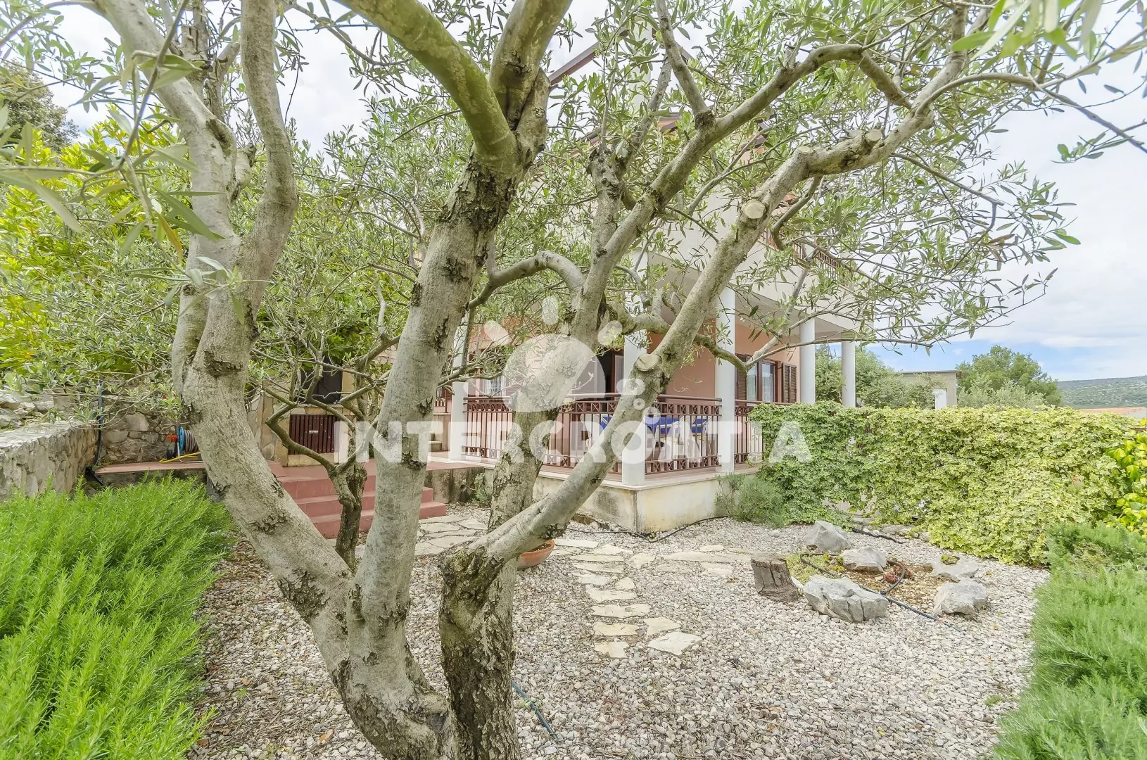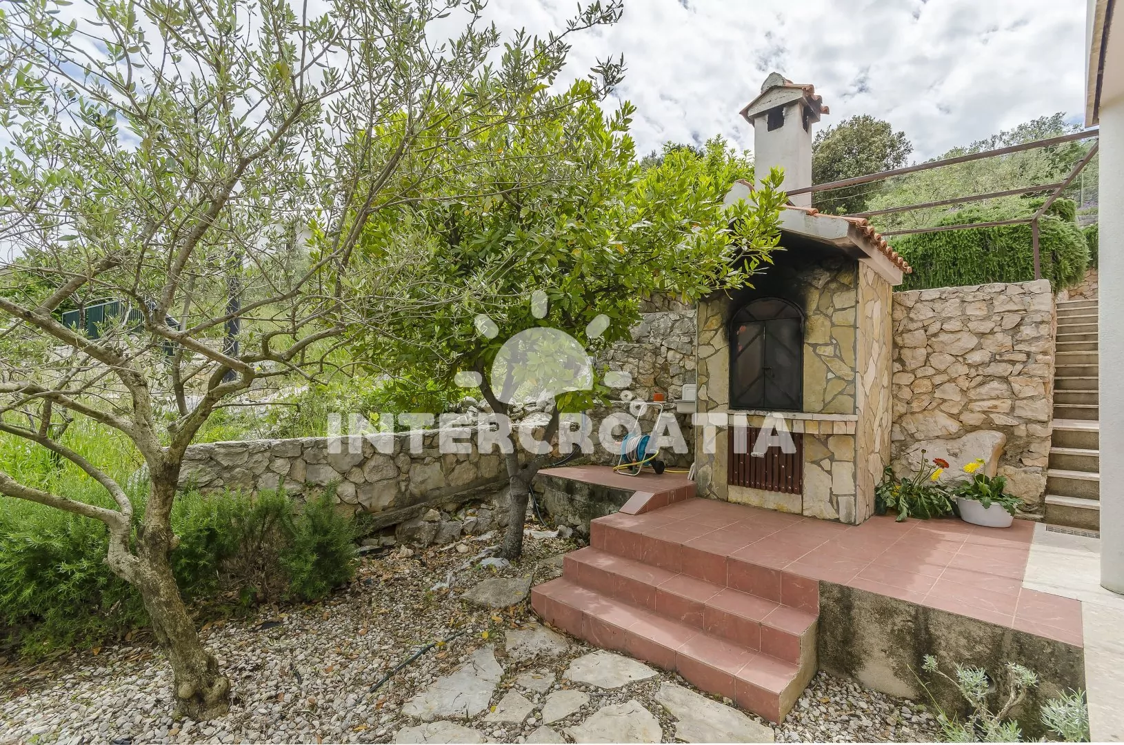 Vila umístěná ve svahu s okouzlujícím výhledem na moře přímo z terasy. Zahrádka se zelení a terasou se zděným grilem je plně k dispozici. Čistá pláž s malými oblázky a pozvolným vstupem do moře se nachází pouze 100 m pěší chůzí od vily. Vlastní parkovací místa přímo u objektu.
