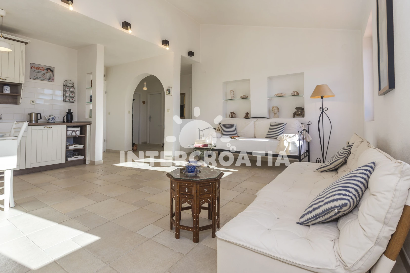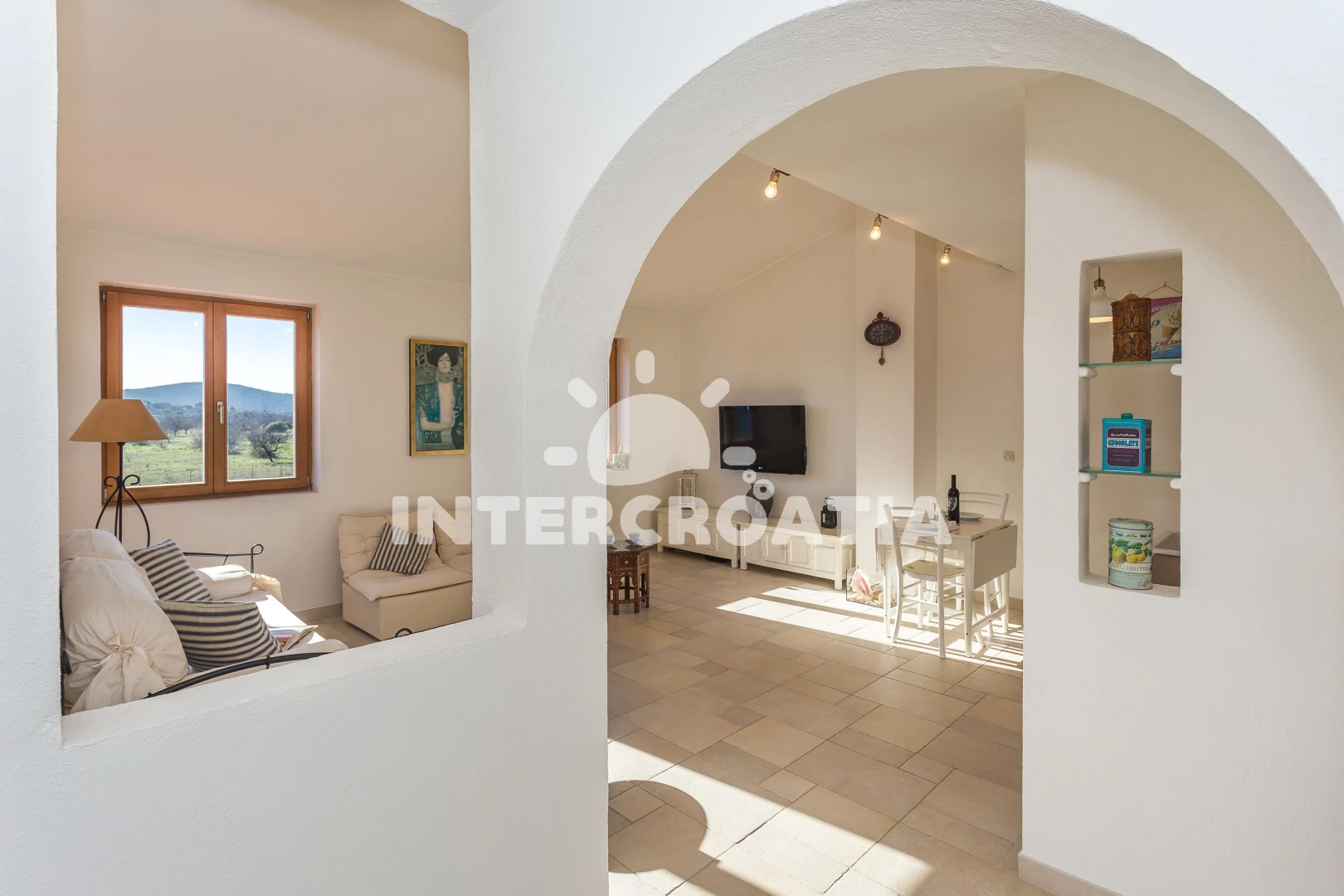 Apartmán se nachází od moře a pláže. Pláž je . Apartmán disponuje bazénem s lehátky pro ubytované hosty. U objektu je k dispozici společná zahrada s posezením a grilem.