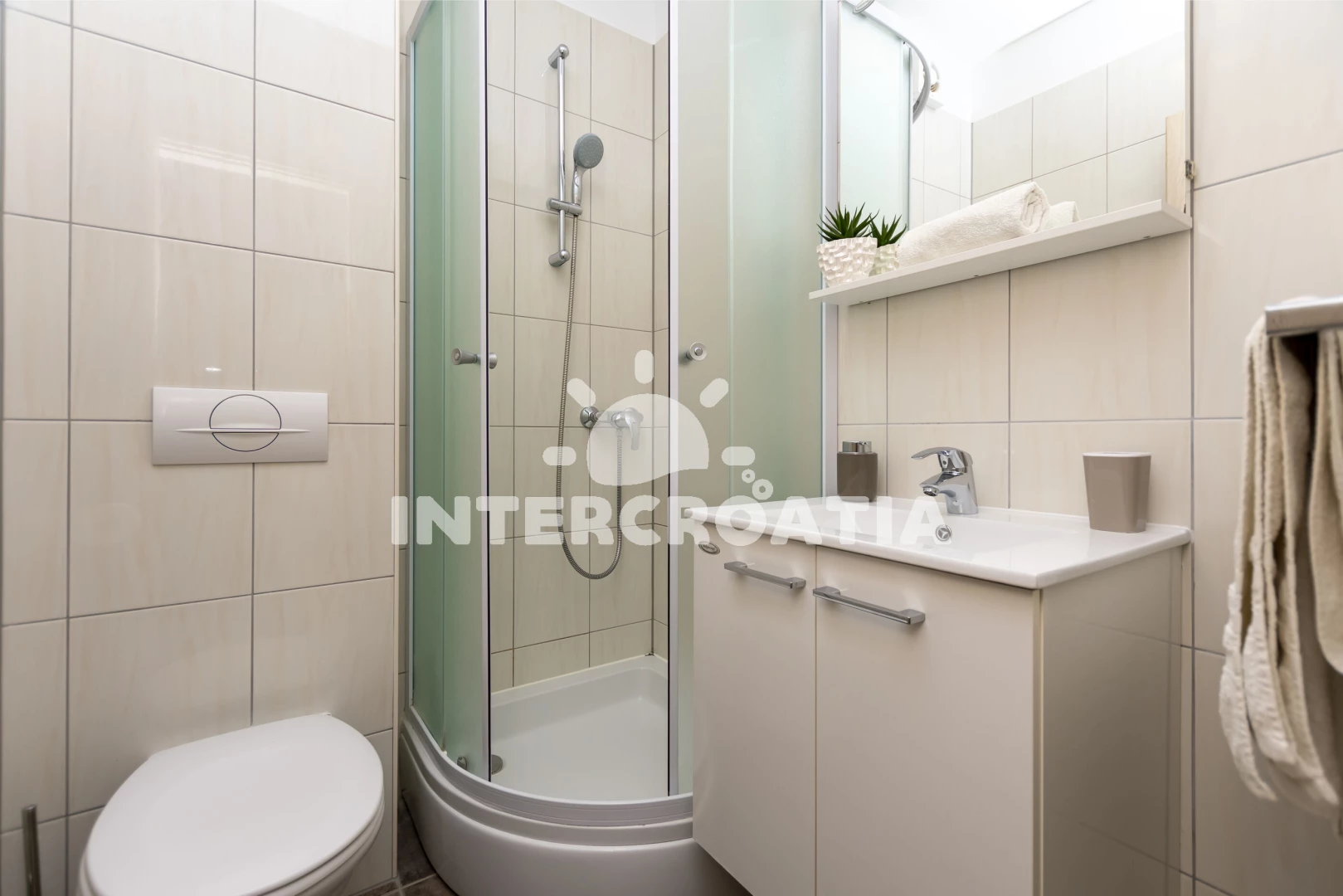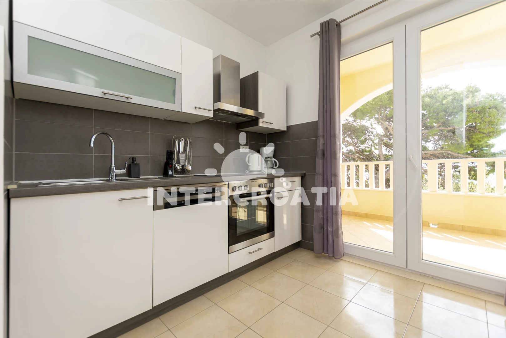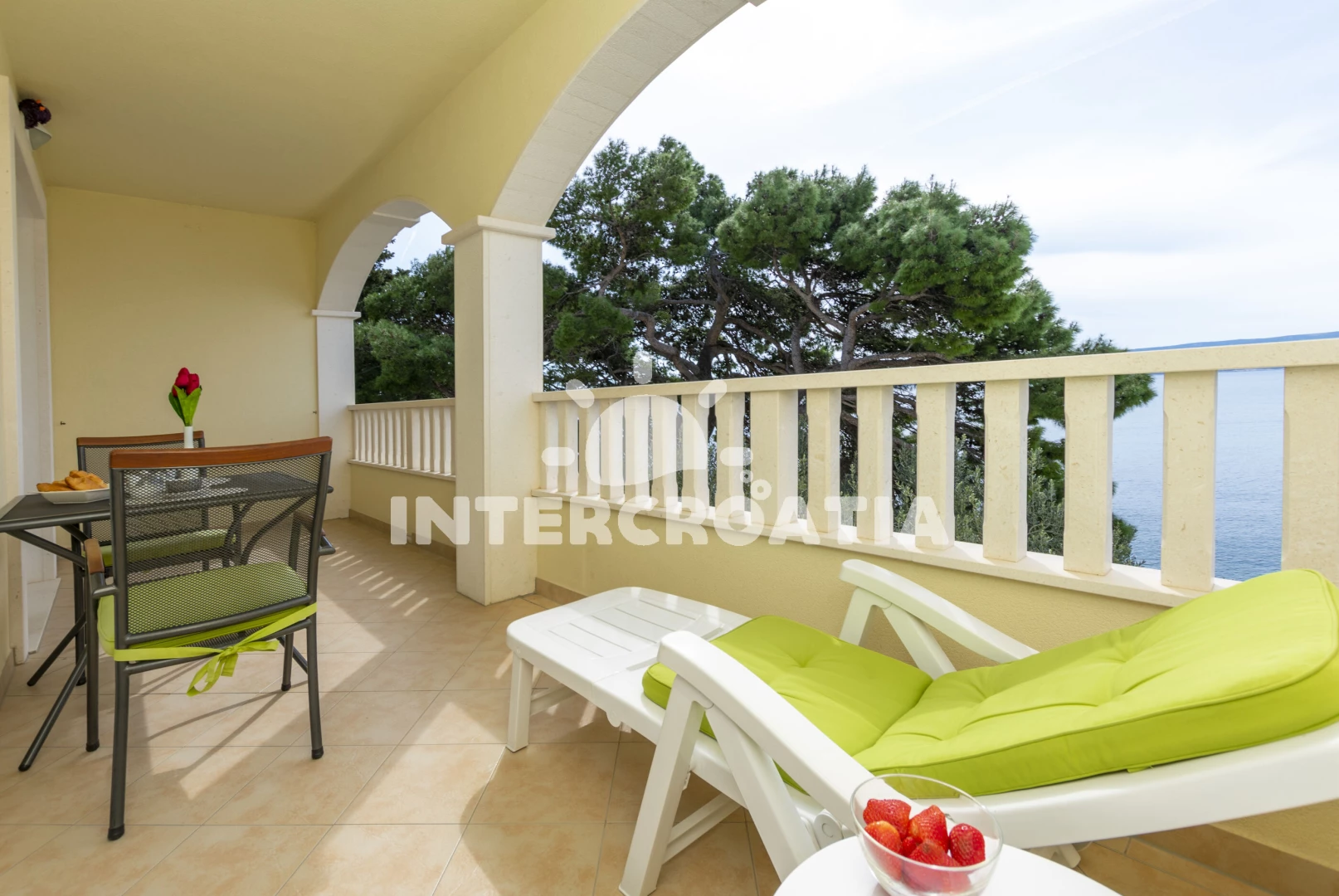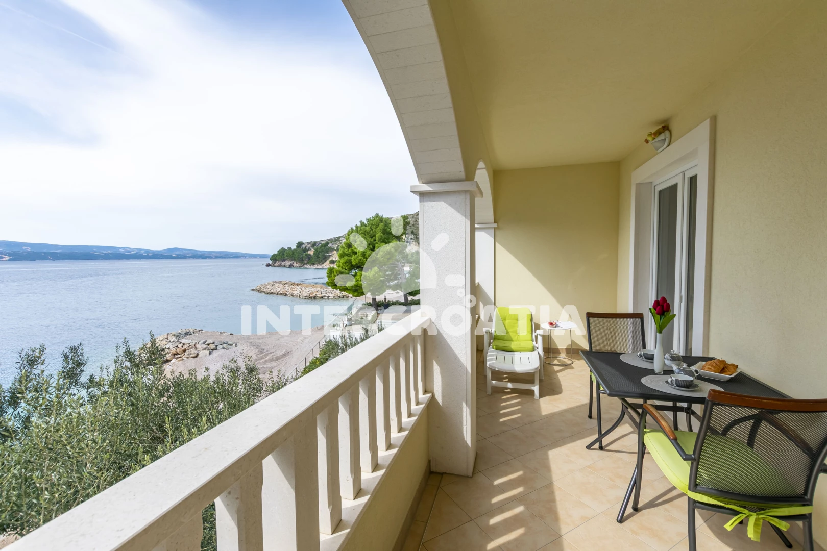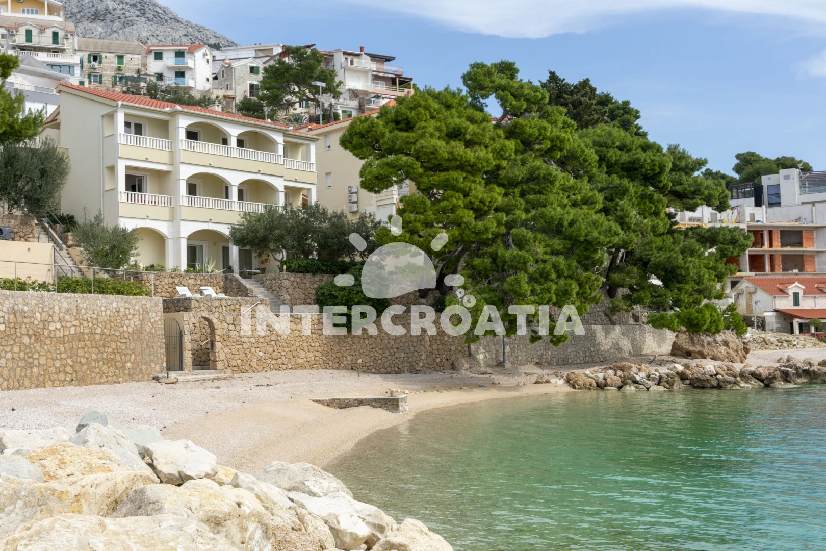 Vzdálenosti: Moře 5 m, pláž 5 m (oblázky), bar 100 m, veřejná doprava 300 m, supermarket 800 m, centrum 1 km, restaurace 2 km, půjčovna motorových člunů 5 km, banka 10 km, půjčovna kol 10 km, směnárna 10 km, ambulance 10 km, tenisové kurty 10 km, potápění 10 km, lékárna 10 km, čerpací stanice 10 km, pošta 10 km, mini golf 18 km, trajekt (Split) 40 km, diskotéka 45 km, letiště (Split) 55 km,