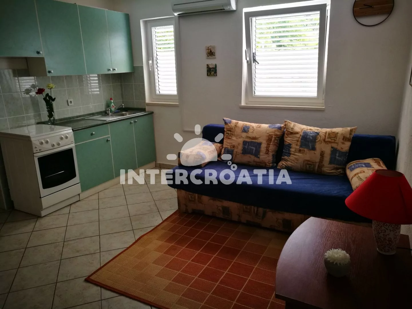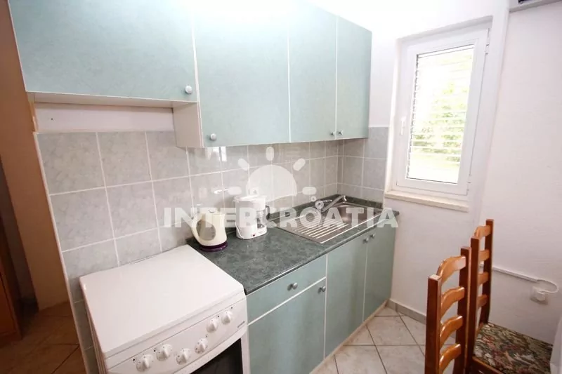 Apartmán (38 m2) s vlastní terasou, výhledem na moře se nachází v 1. patře domu a je vhodný pro 2 až 4 osoby. Obývací pokoj je spojený s kuchyní. Kuchyňská linka je vybavena sporákem, troubou,…