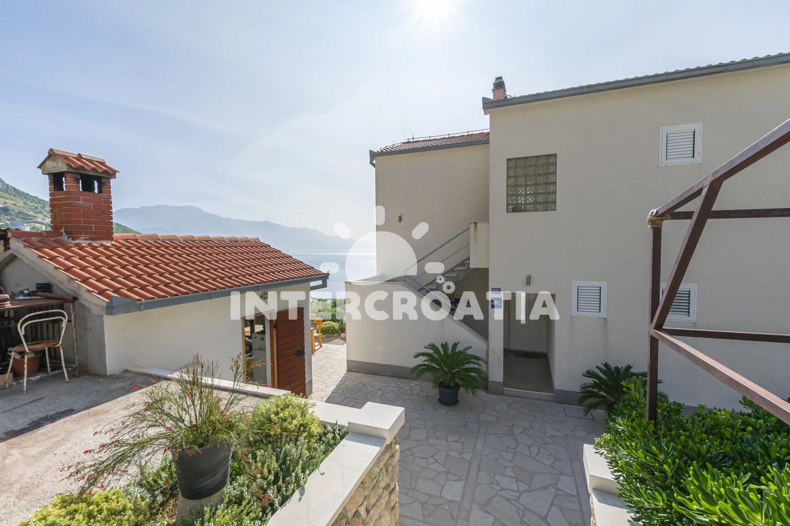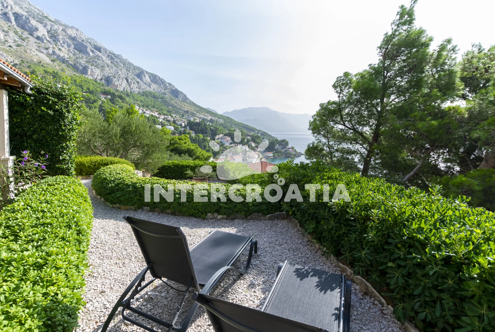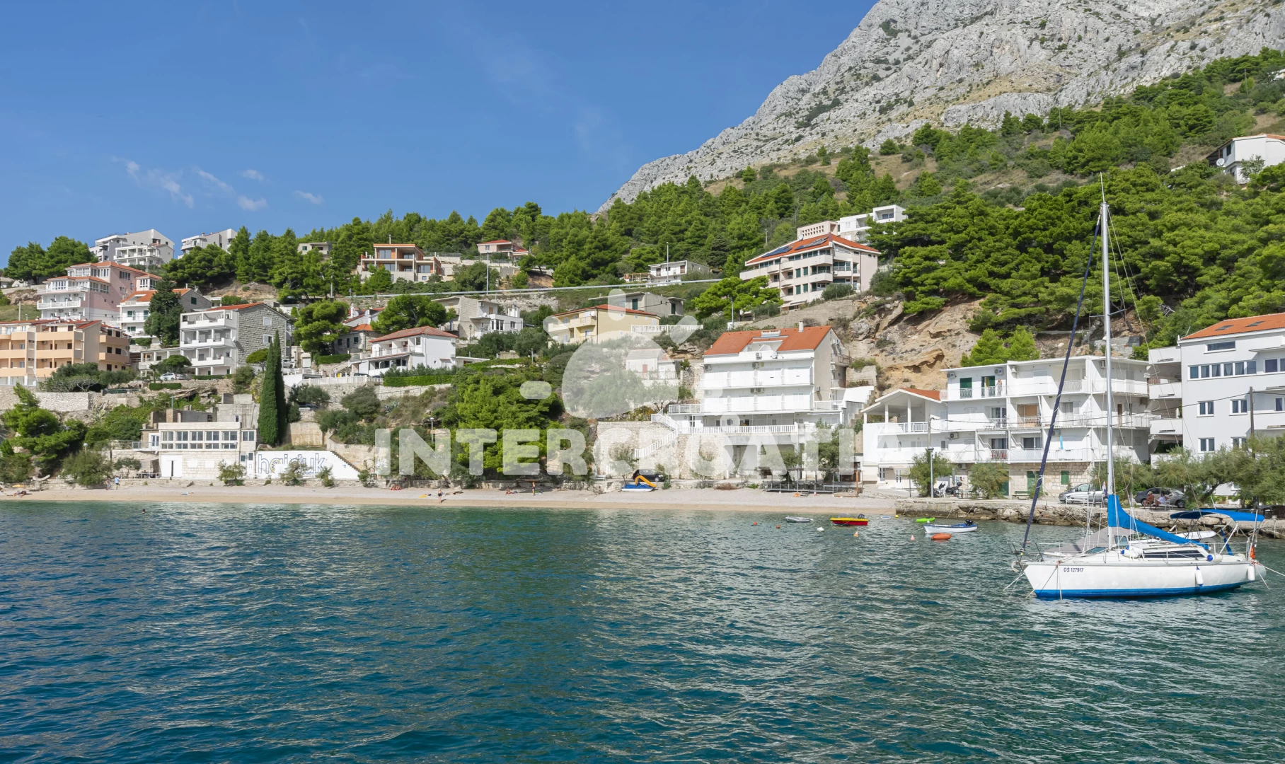 Vzdálenosti: Moře a oblázková pláž 300 m (cesta se schody), centrum, obchod s potravinami, směnárna, veřejná doprava, pošta a bar 350 m, restaurace 500 m, čerpací stanice, ambulance, lékárna, přístav, potápění a banka 10 km, trajekt (Makarska) 25 km, letiště (Split) 54 km.