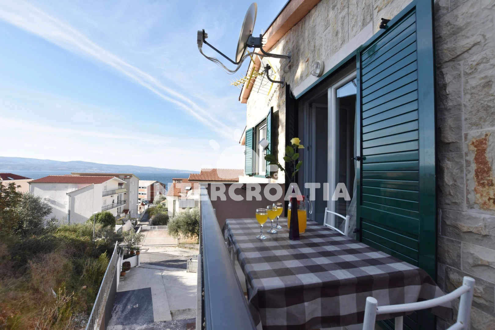 Vzdálenosti: Moře 200 m, pláž 250 m (oblázky), restaurace 100 m, supermarket 200 m, centrum 200 m, bar 200 m, půjčovna motorových člunů 250 m, pošta 2 km, ambulance 2 km, směnárna 2 km, banka 2 km, lékárna 2 km, potápění 2,5 km, tenisové kurty 2,5 km, čerpací stanice 2,5 km, půjčovna kol 2,5 km, mini golf 8,5 km, trajekt (Split) 35 km, diskotéka 35 km, letiště (Split) 50 km,