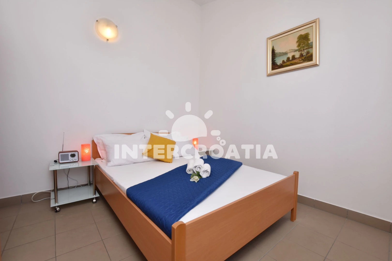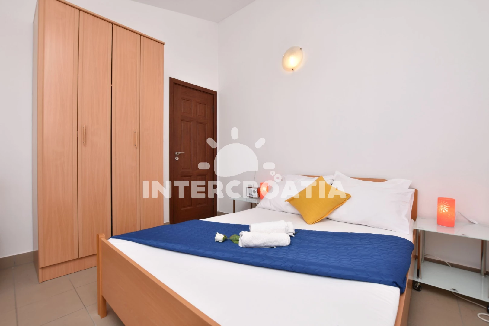 Apartmán (34 m2) s balkonem, a výhledem na moře. Nachází se ve 2. patře objektu. Apartmán má 1 ložnici a je vhodný pro až 4 osoby. Kuchyňská linka je vybavena varnou deskou, troubou, toustovačem, mikrovlnnou troubou, rychlovarnou konvicí, nádobím, lednicí, mrazákem. V obývací místnosti je rozložitelná pohovka (extra lůžko pro 2 osoby). K dispozici televize se satelitním programem, radio, žehlička. Ložnice s dvoulůžkem. Koupelna se sprchovým koutem, umyvadlem, fénem a WC.