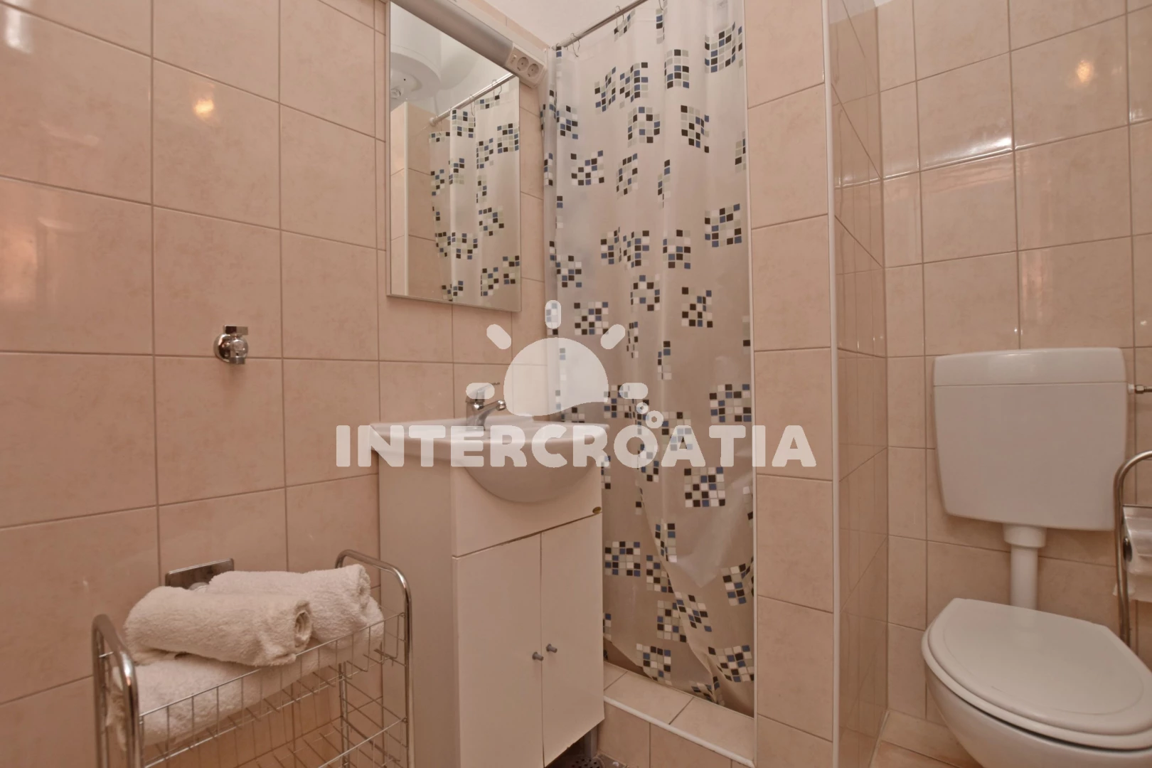 Vzdálenosti: Moře 200 m, pláž 250 m (oblázky), restaurace 100 m, supermarket 200 m, centrum 200 m, bar 200 m, půjčovna motorových člunů 250 m, pošta 2 km, ambulance 2 km, směnárna 2 km, banka 2 km, lékárna 2 km, potápění 2,5 km, tenisové kurty 2,5 km, čerpací stanice 2,5 km, půjčovna kol 2,5 km, mini golf 8,5 km, trajekt (Split) 35 km, diskotéka 35 km, letiště (Split) 50 km,
