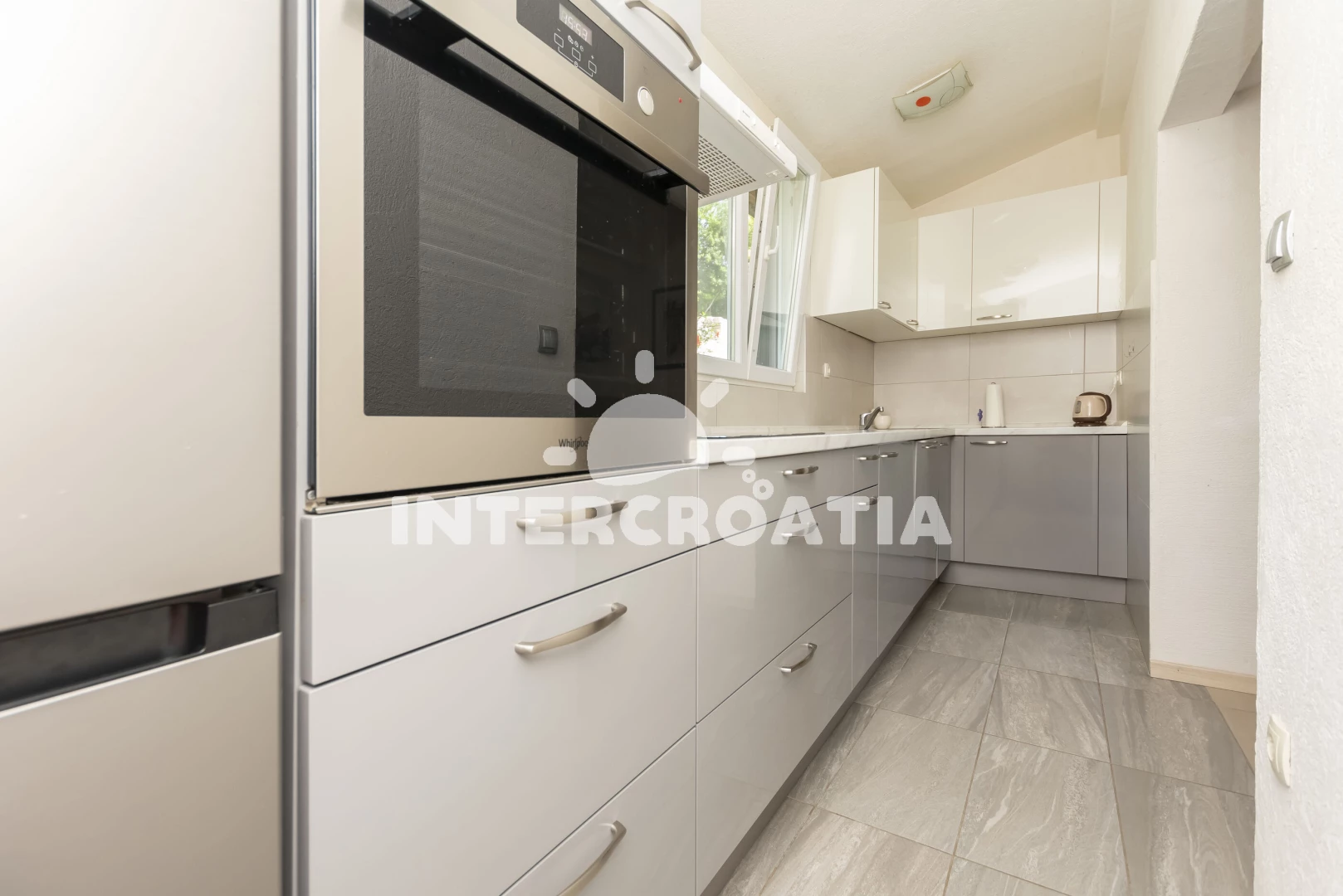 Vzdálenosti: Moře 55 m, pláž 55 m (oblázky), bar 50 m, restaurace 400 m, potápění 1,5 km, veřejná doprava 1,6 km, směnárna 2,5 km, supermarket 2,5 km, ambulance 2,5 km, lékárna 2,5 km, marina 2,5 km, banka 2,5 km, centrum 2,5 km, pošta 2,5 km, čerpací stanice 3 km, mini golf 17 km, tenisové kurty 20 km, diskotéka 25 km, trajekt (Split) 35 km, letiště (Split) 45 km,