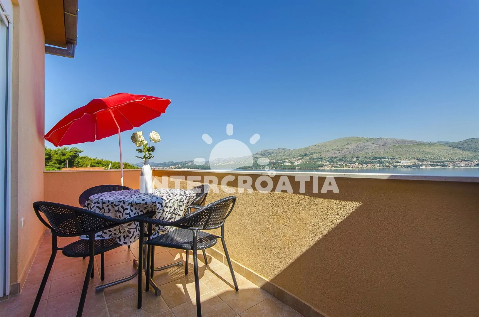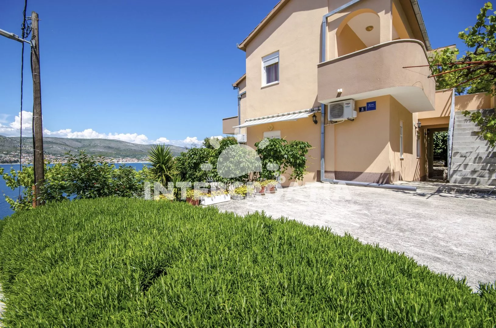 Patrový apartmánový dům s terasou, výhledem na moře a minimální pěší vzdáleností na pláž.