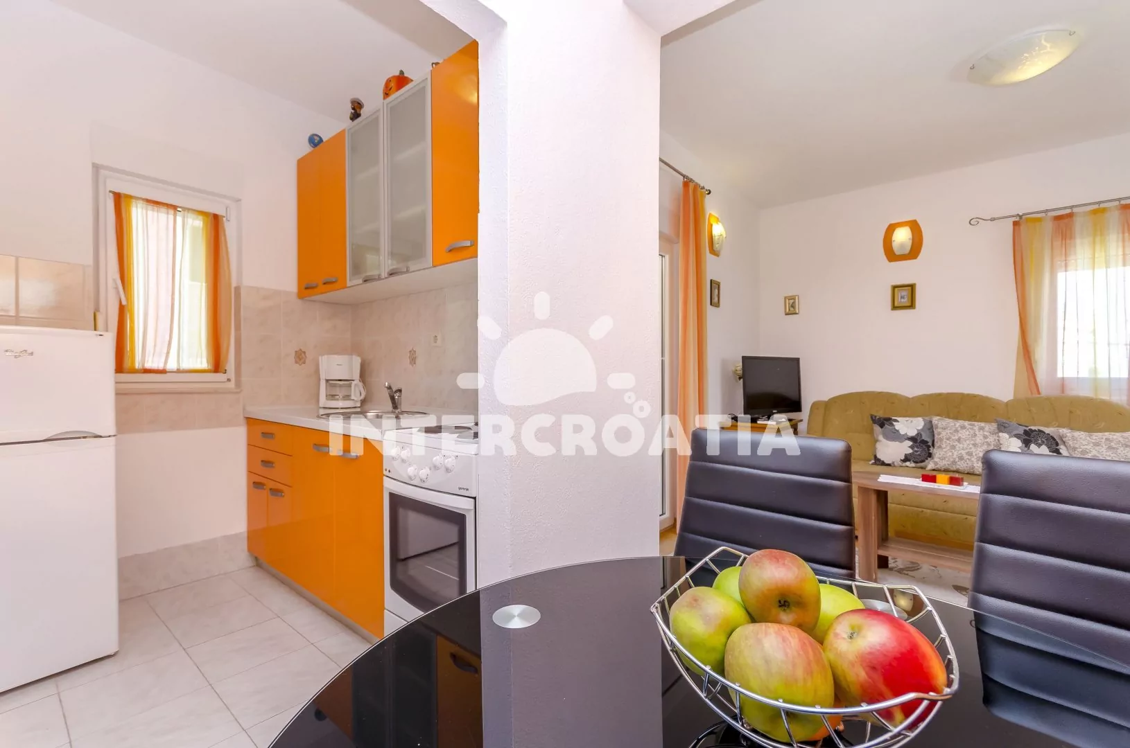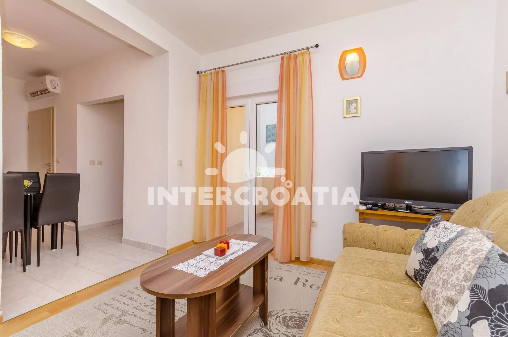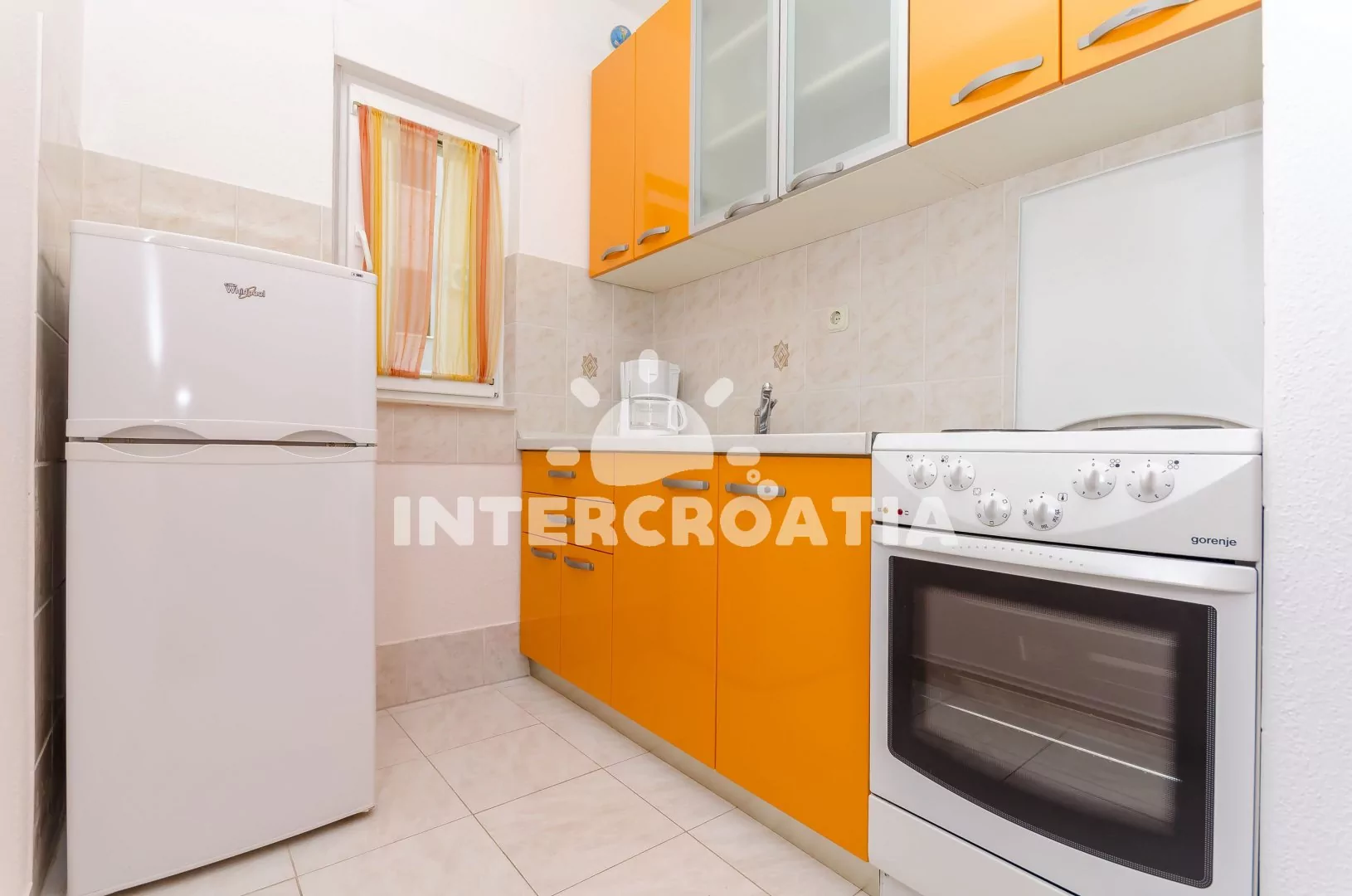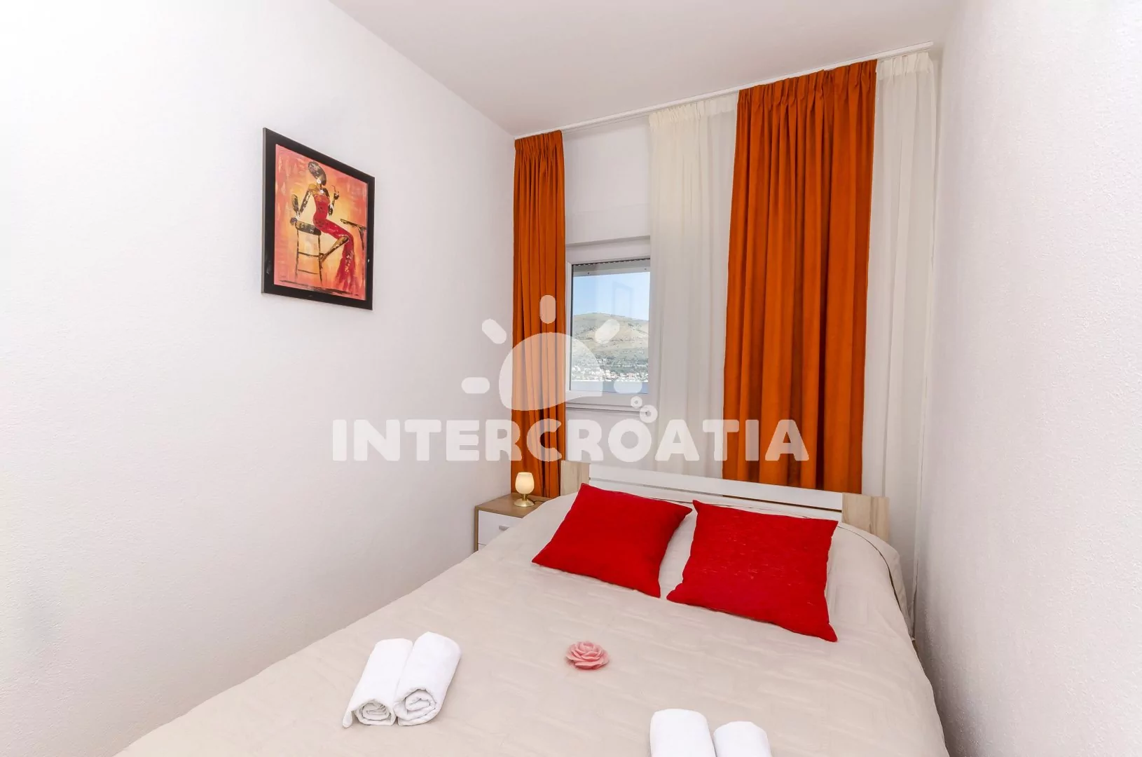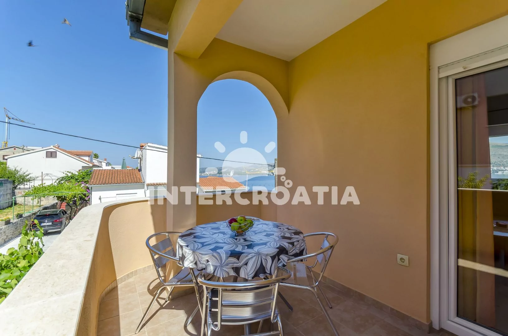 Město Okrug Donji se rozprostírá na ostrově Čiovo a tvoří tak celek s historickým centrem Trogir (12 km), leží 14 km od rybářské obce Slatine a 38 km od největšího přístavu Chorvatska Split. Apartmán je vzdálen 90 m pěšky od oblázkové pláže.