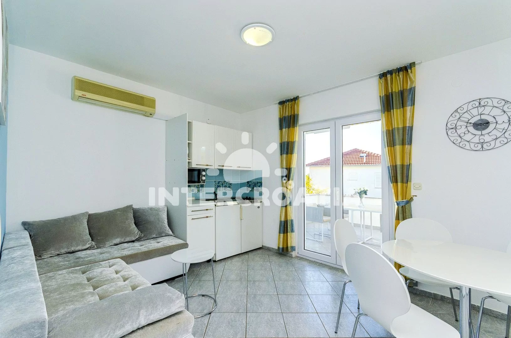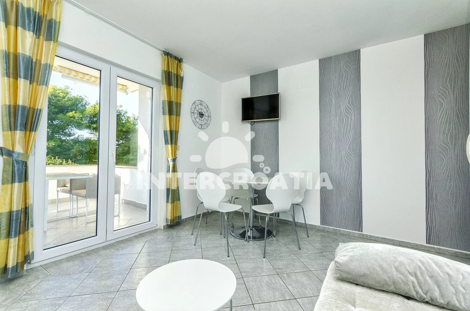 Vzdálenosti: Moře a kamenná-betonová pláž 190 m, oblázková pláž 600 m, restaurace, bar 500 m, půjčovna motorových člunů a cyklistických kol 800 m, supermarket, veřejná doprava, pošta, směnárna 1 km, lékárna, tenis 5 km, potápění 6 km, centrum 8,8 km, ambulance 9,5 km, trajekt, přístav, čerpací stanice, banka, muzeum, diskotéka 10 km, letiště 15 km.