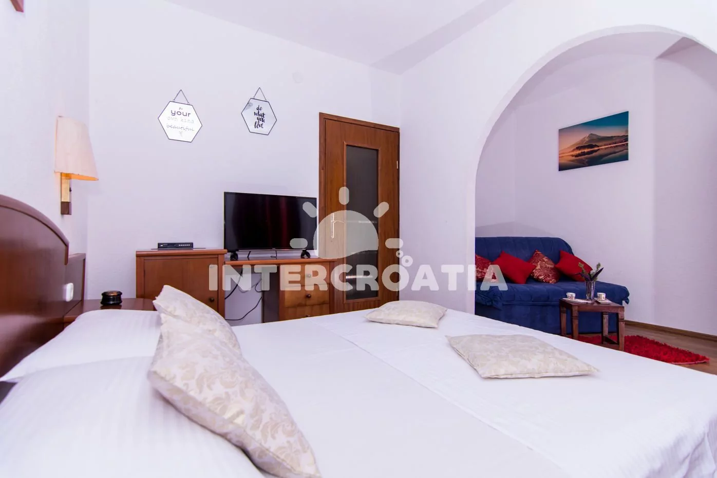 Domácí zvířata jsou povolena (5 €/den, uvést v rezervaci). V ceně pobytu zahrnuto: WiFi, klimatizace, povlečení, ručníky, závěrečný úklid a pobytová taxa. Žehlička, pračka a fén k zapůjčení u pronajímatele. Registrační poplatek (180 Kč/osoba/pobyt, se připočte automaticky k ceně objednávky). Pronajímatel se dorozumí chorvatsky a anglicky.