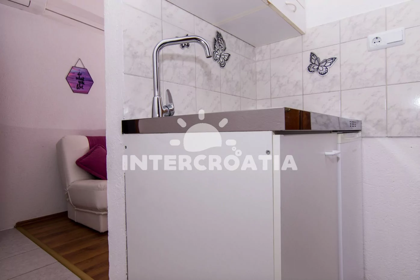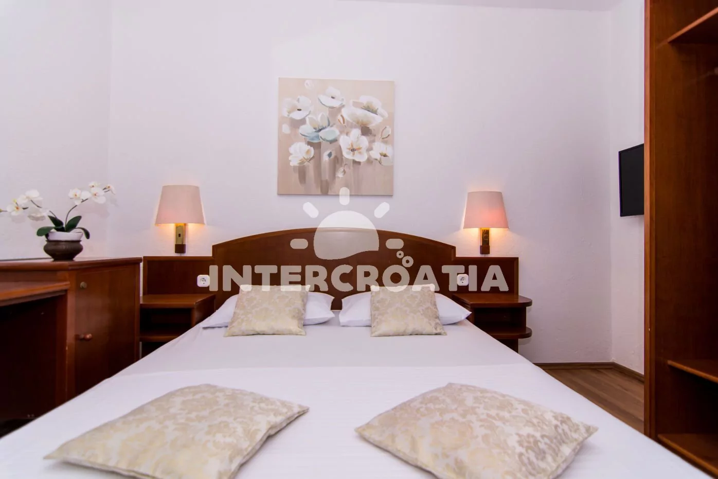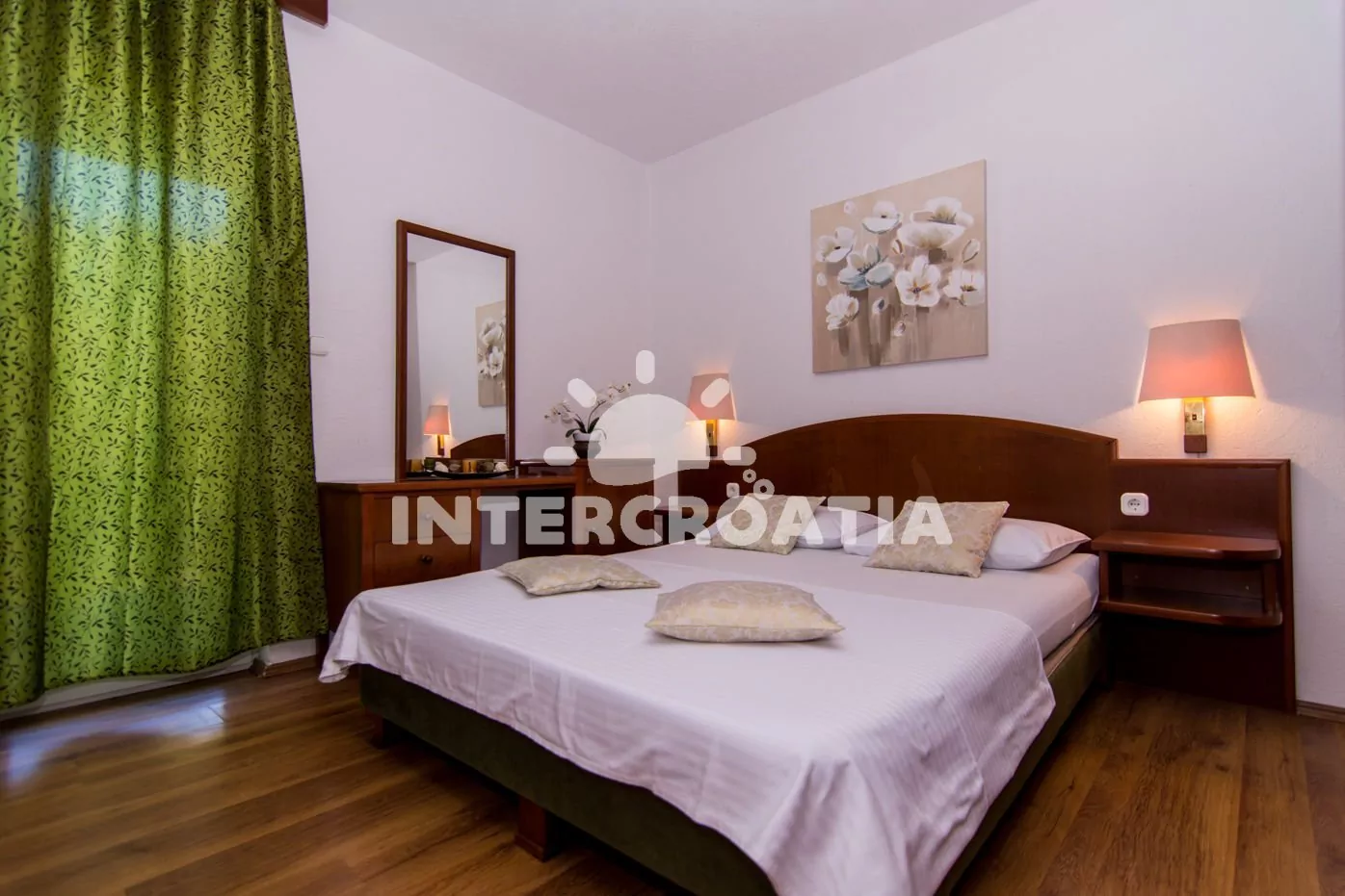 Vzdálenosti: Moře a pláž 290 m (oblázky a betonové desky), obchod a směnárna 50 m, restaurace a bar 150 m, centrum a veřejná doprava 20 m, pošta 30 m, lékárna, ambulance, přístav, muzeum, diskotéka, bazén, tenisové kurty, banka a čerpací stanice 5 km, půjčovna cyklistických kol a motorových člunů 3 km, potápění 4 km, mini golf 7 km, trajekt 35 km (Split), letiště 15 km (Split).