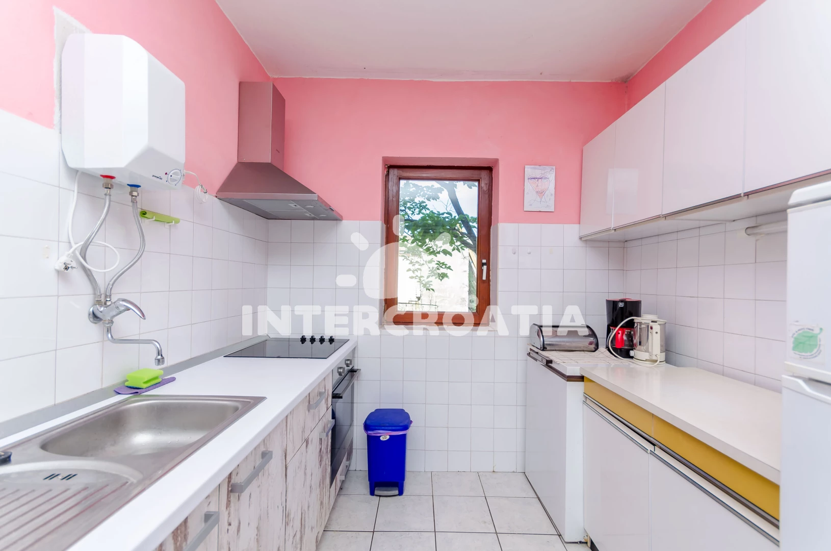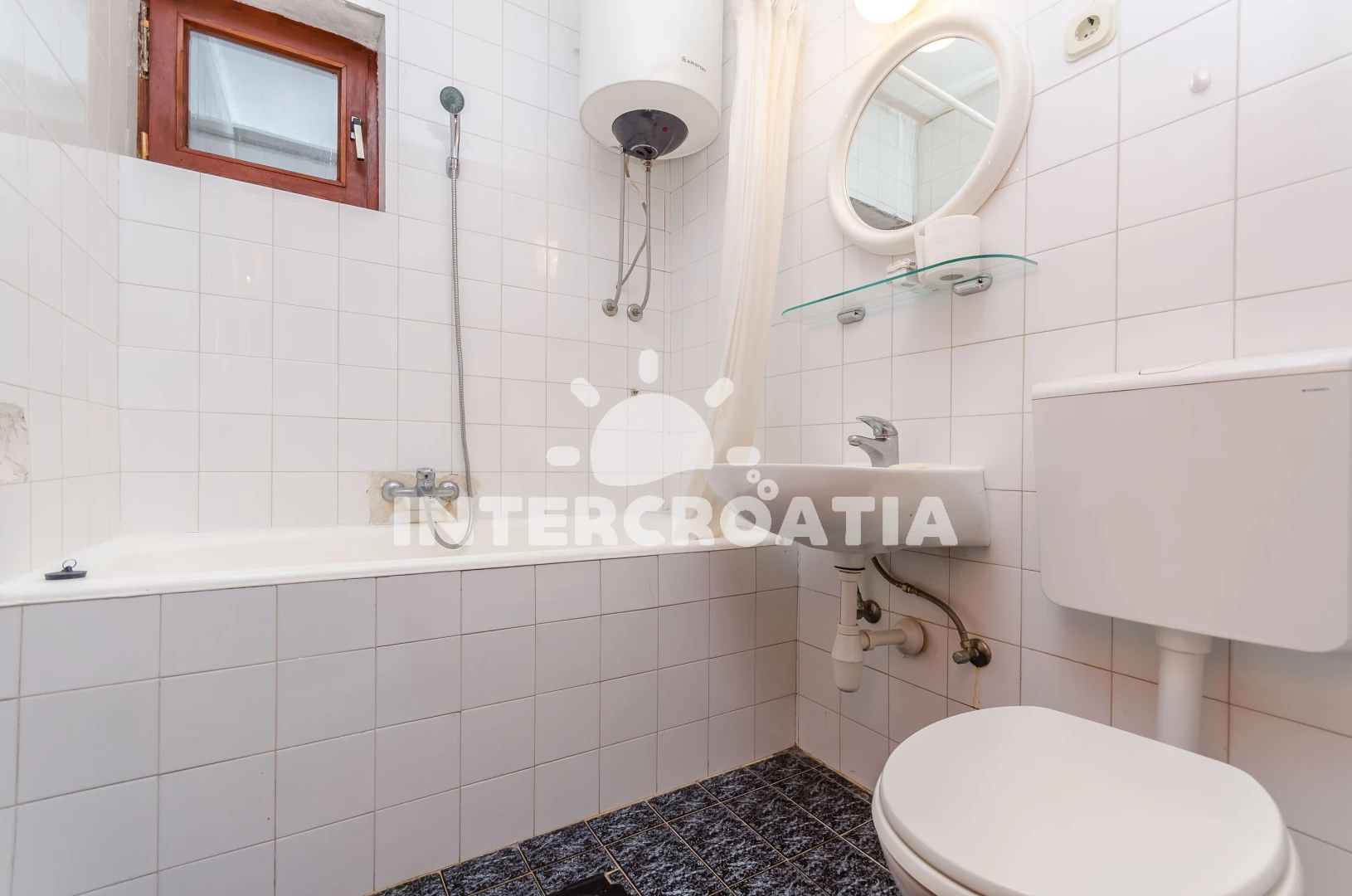 Vzdálenosti: Moře 200 m, pláž 300 m (betonové desky), supermarket 300 m, restaurace 300 m, centrum 300 m, bar 300 m, směnárna 7 km, lékárna 7 km, banka 10 km, letiště (Split) 15 km,