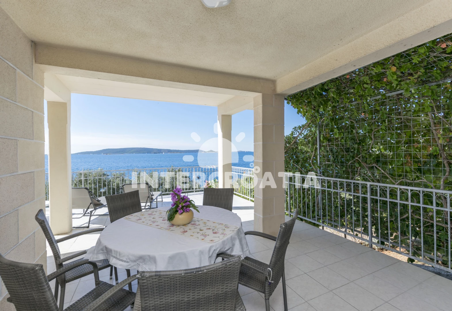 Kilátás a tengerre,fedett árnyékos terasz.