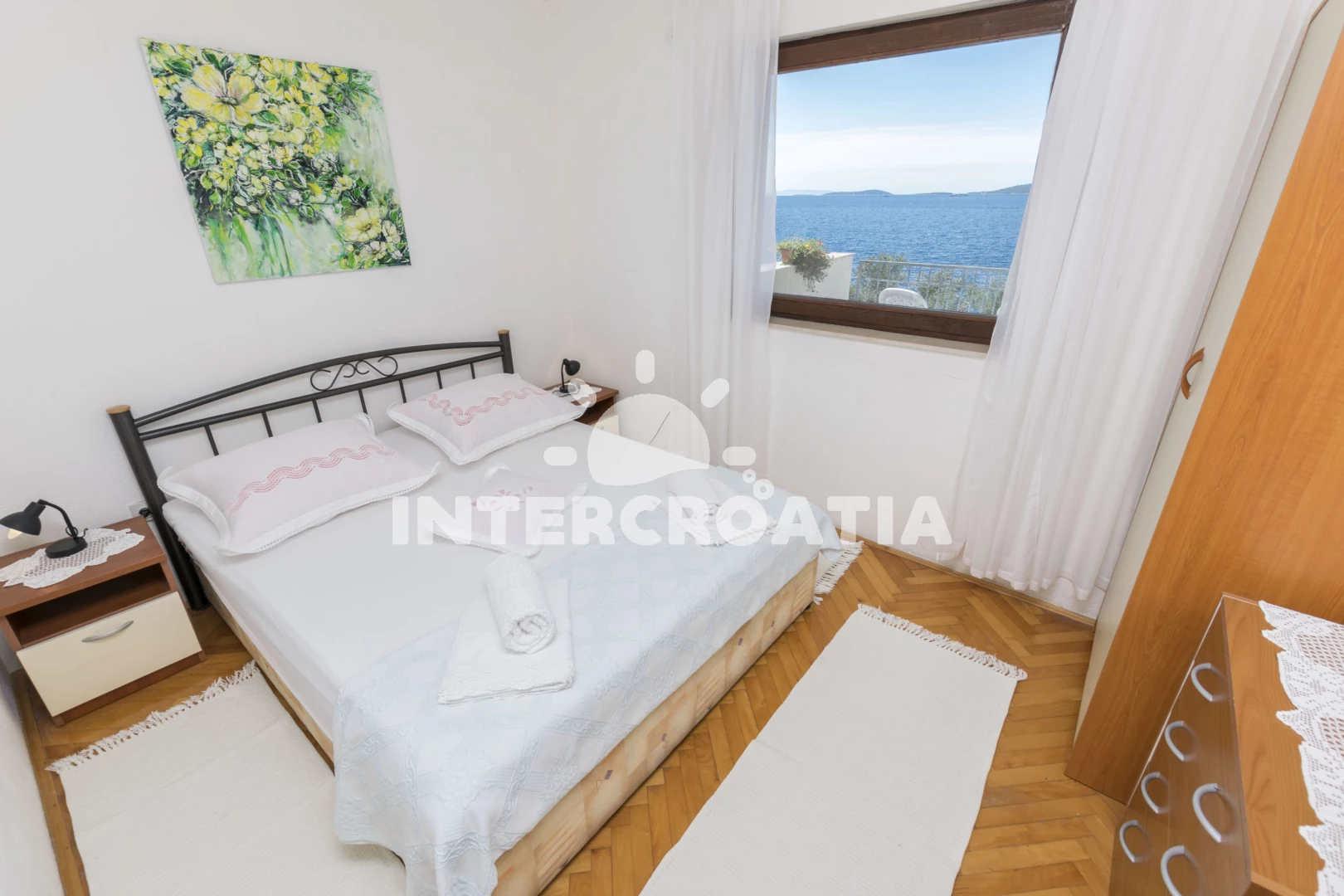 Apartmán se nachází 10 m od moře a pláže. Pláž je betonové desky. Parkování je před domem.