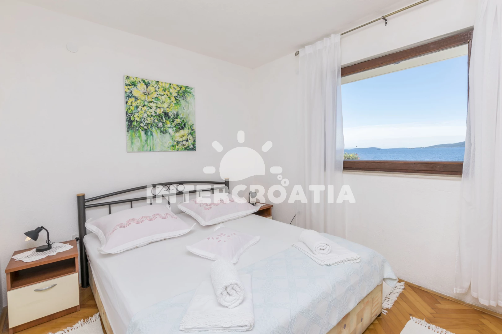 Apartmán (80 m2) s balkonem, a výhledem na moře. Nachází se v 1. patře objektu. Apartmán má 3 ložnice a je vhodný pro až 6 osob. Kuchyňská linka je vybavena varnou deskou, troubou, kávovarem, toustovačem, mikrovlnnou troubou, rychlovarnou konvicí, nádobím, lednicí, mrazákem. K dispozici televize se satelitním programem, žehlička. První ložnice s dvoulůžkem. Druhá ložnice s dvoulůžkem. Třetí ložnice s dvoulůžkem. Koupelna se sprchovým koutem, umyvadlem, WC.
