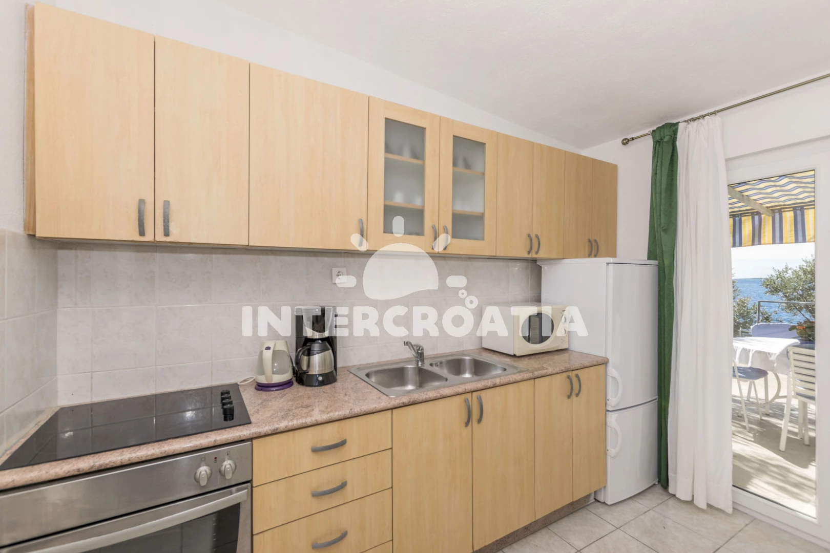 Vzdálenosti: Moře 10 m, pláž 10 m (betonové desky), restaurace 500 m, bar 500 m, supermarket 500 m, ambulance 3 km, lékárna 3 km, pošta 3 km, směnárna 3 km, centrum 7 km, banka 7 km, čerpací stanice 7 km, muzeum 7 km, letiště (Split) 10 km, trajekt (Split) 35 km,