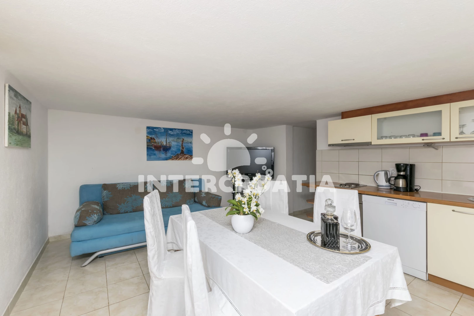 Apartmán se nachází 10 m od moře a pláže. Pláž je betonové desky. Parkování je před domem.