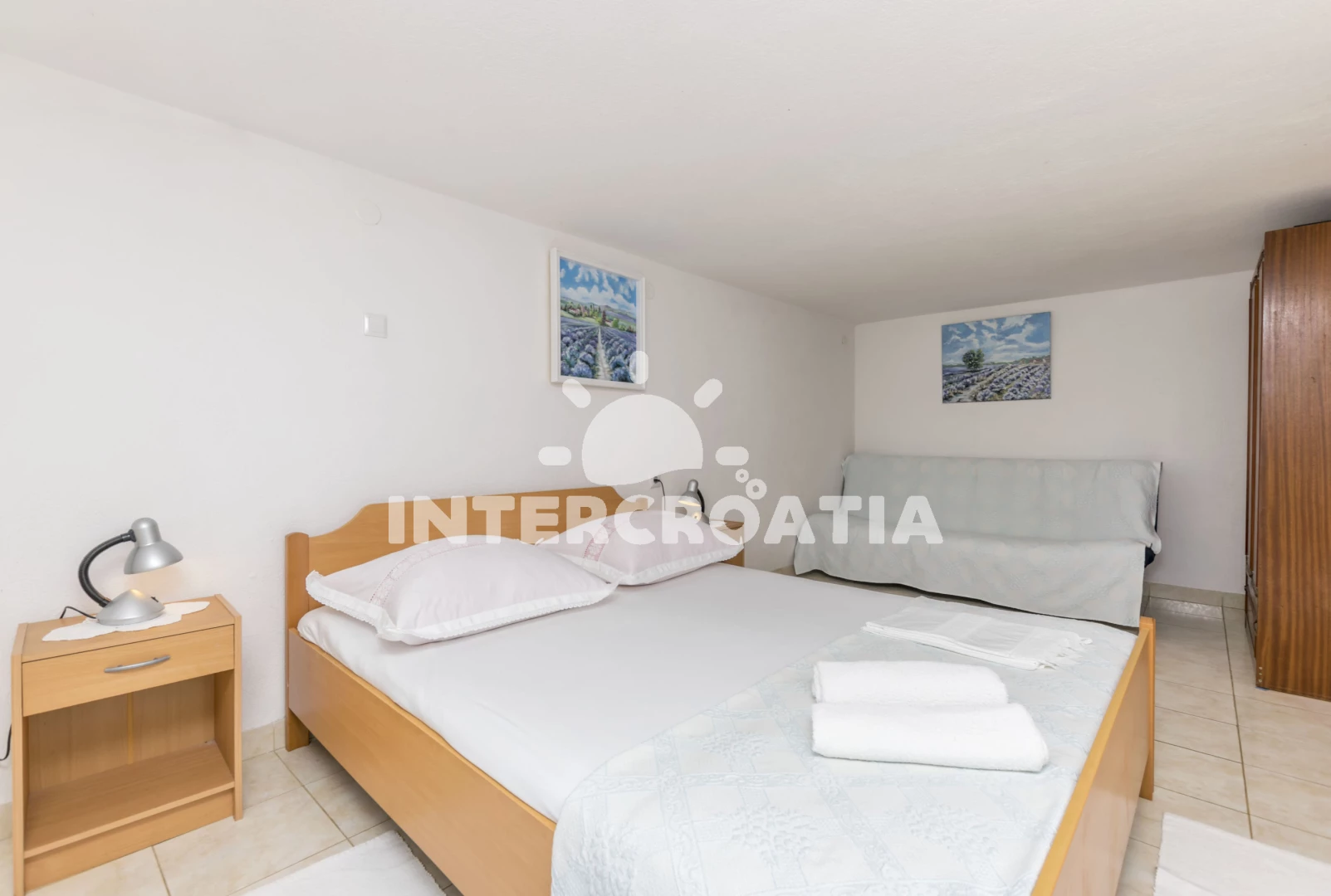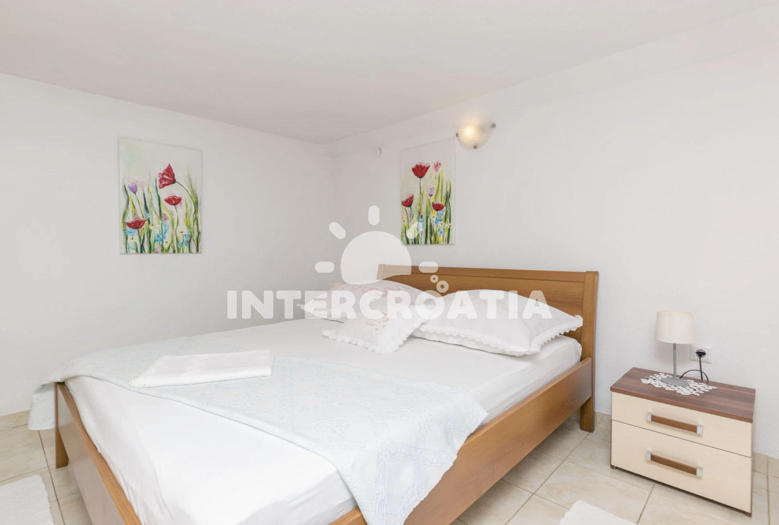 Vzdálenosti: Moře 10 m, pláž 10 m (betonové desky), restaurace 500 m, bar 500 m, supermarket 500 m, ambulance 3 km, lékárna 3 km, pošta 3 km, směnárna 3 km, centrum 7 km, banka 7 km, čerpací stanice 7 km, muzeum 7 km, letiště (Split) 10 km, trajekt (Split) 35 km,