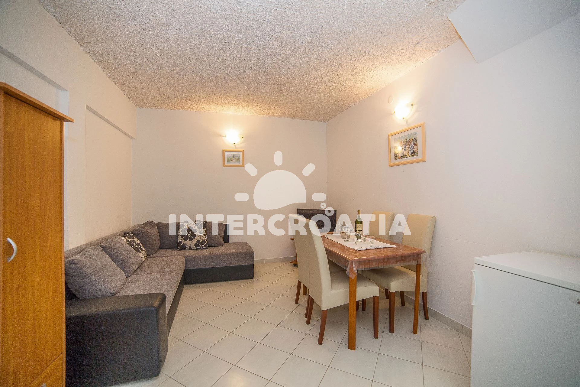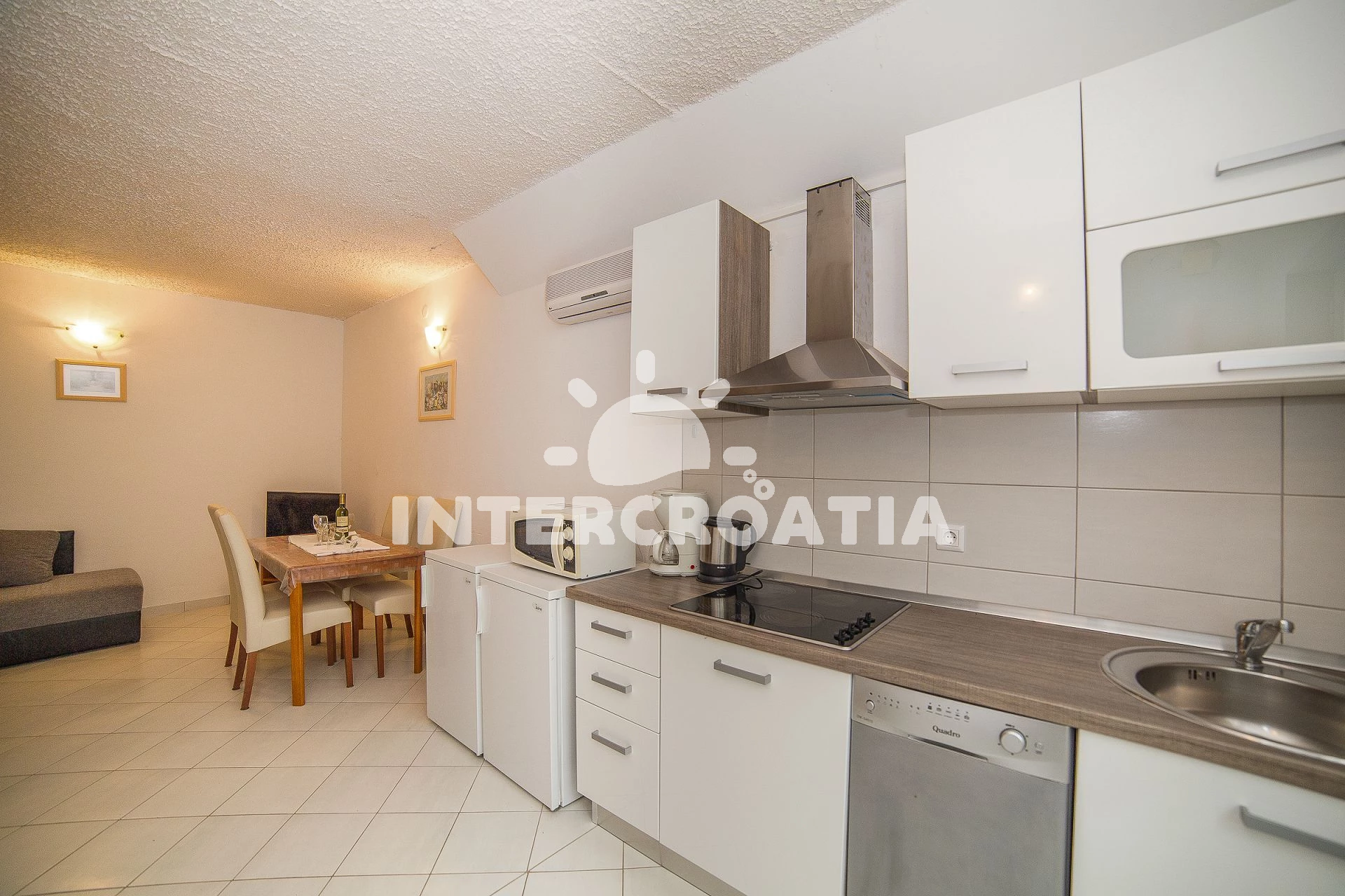 Vzdálenosti: Moře 150 m, pláž 200 m (oblázková a betonové desky), veřejná doprava 70 m, restaurace 150 m, centrum 200 m, supermarket 200 m, ambulance 200 m, letiště 7 km, trajekt 30 km, park Plitvice 60 km,
